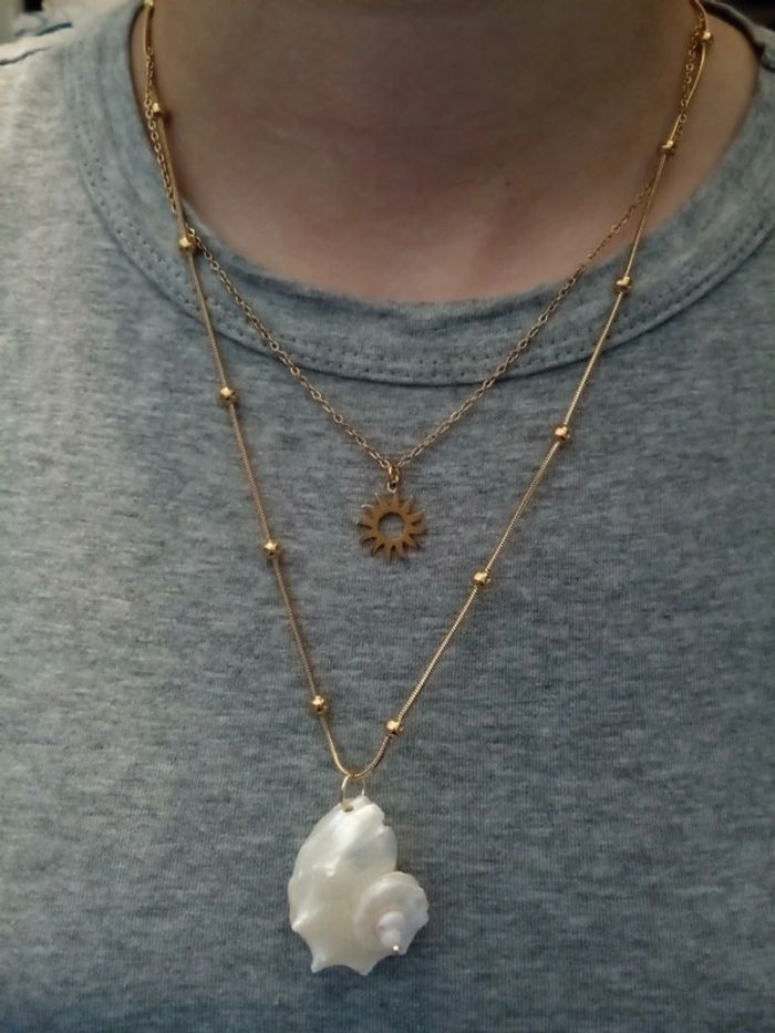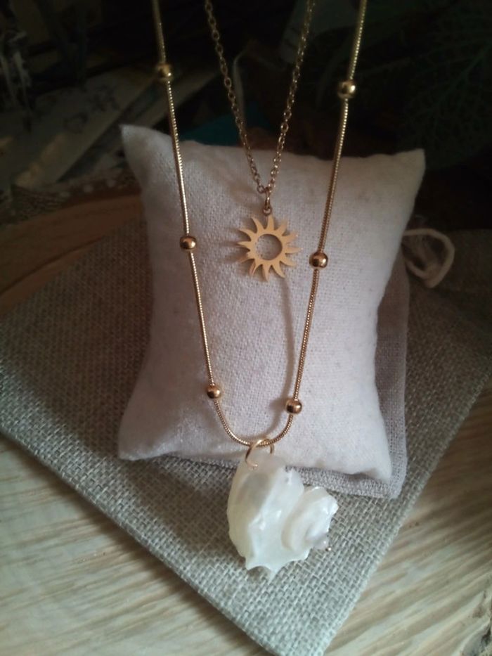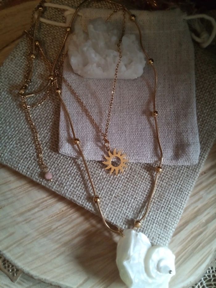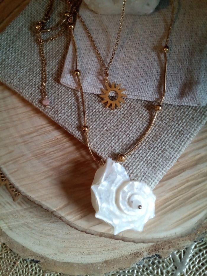 Collier double bohème coquillage de nacre soleil - photo numéro 1