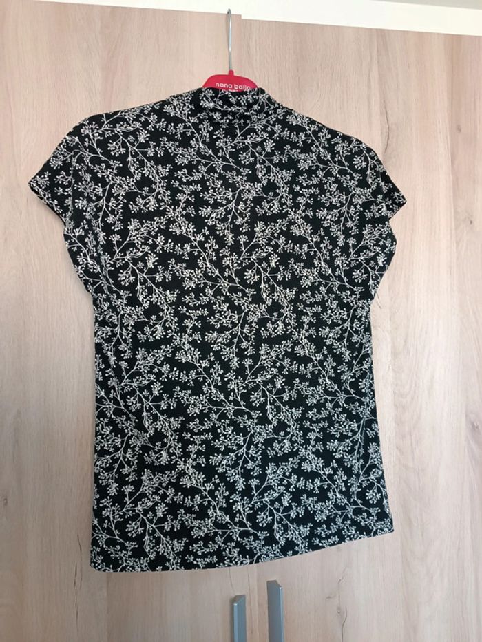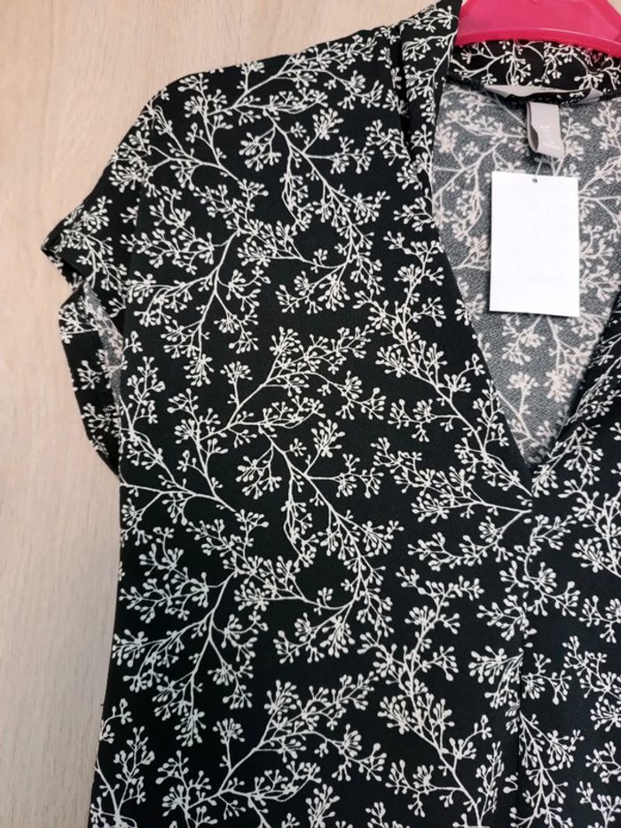 blouse légère De chez H&M Taille xs Motifs fleuries Manches courtes Décolleté sympa Neuf avec étiquette Noir ⚫ à fleurs blanches #carbelltaille34femme