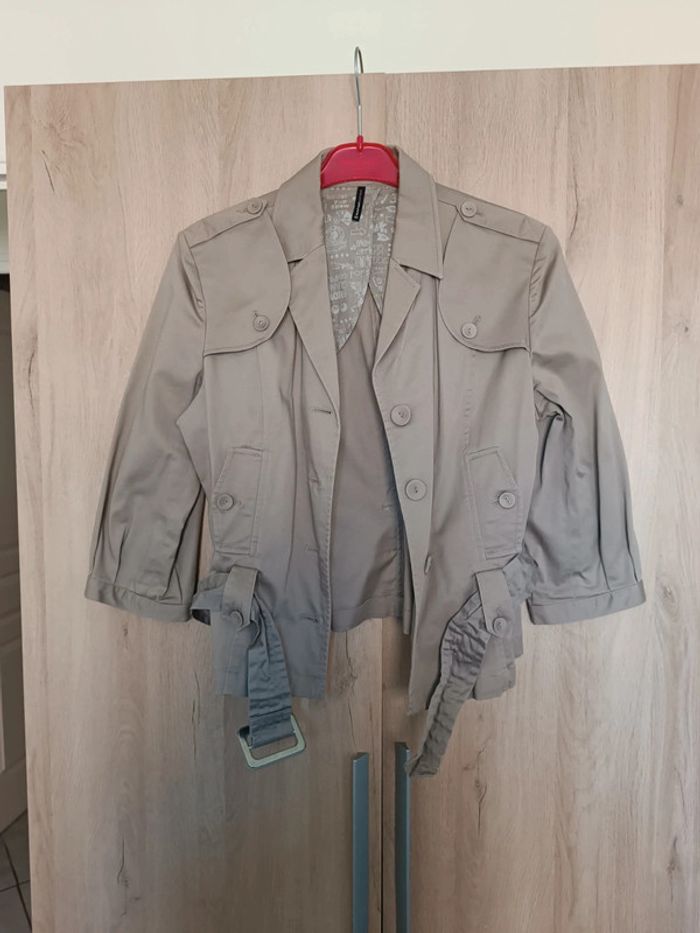 Veste NAF NAF Couleur grise Taille 42 Fermeture avec ceinture et boutons Veste demi saison #carbelltaille42femme