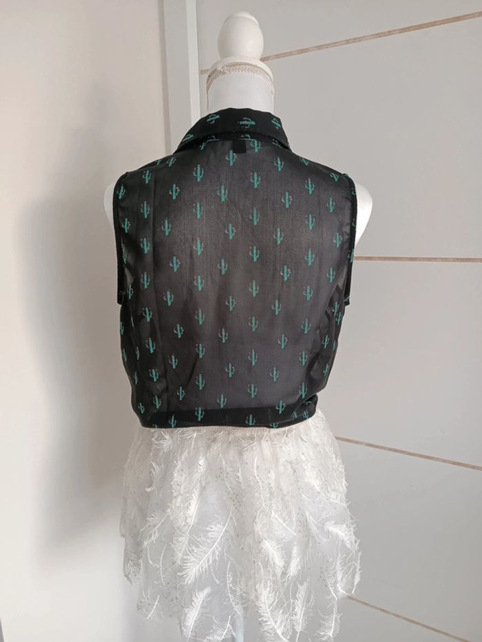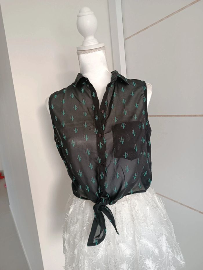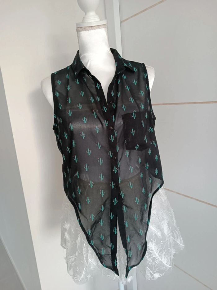 Chemisier Jennyfer taille m Noir a petit cactus 🌵 Transparence très jolie avec soutien gorge noir en dessous Très bon état #carbelltaille38femme
