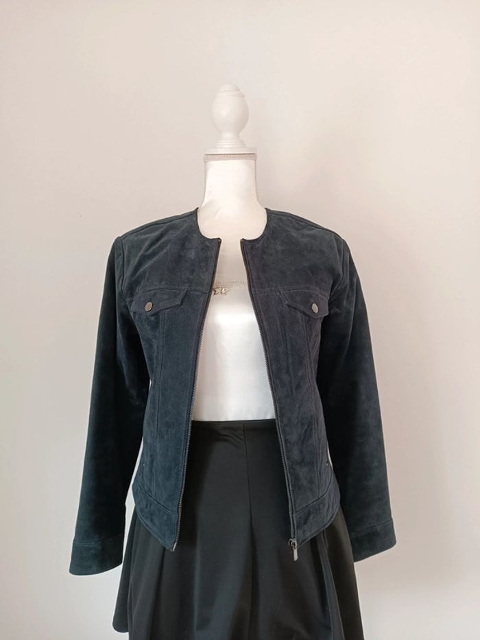Veste cuir Mango bleu taille s - photo numéro 3