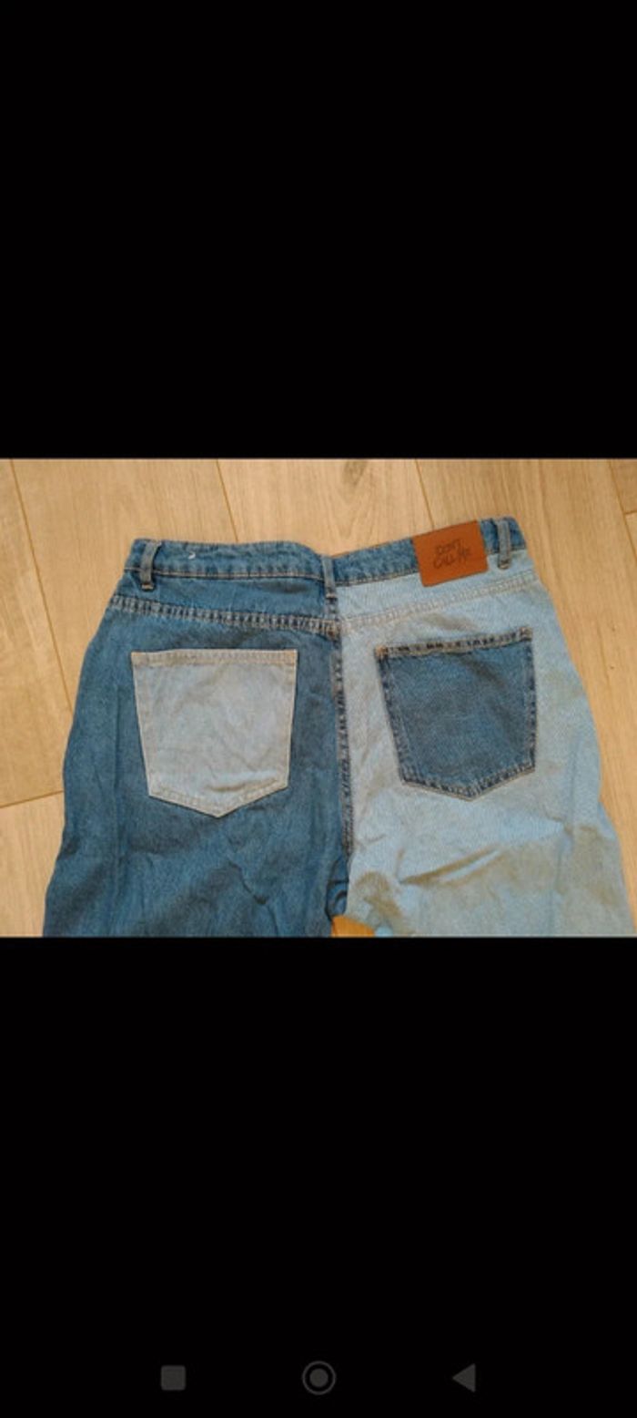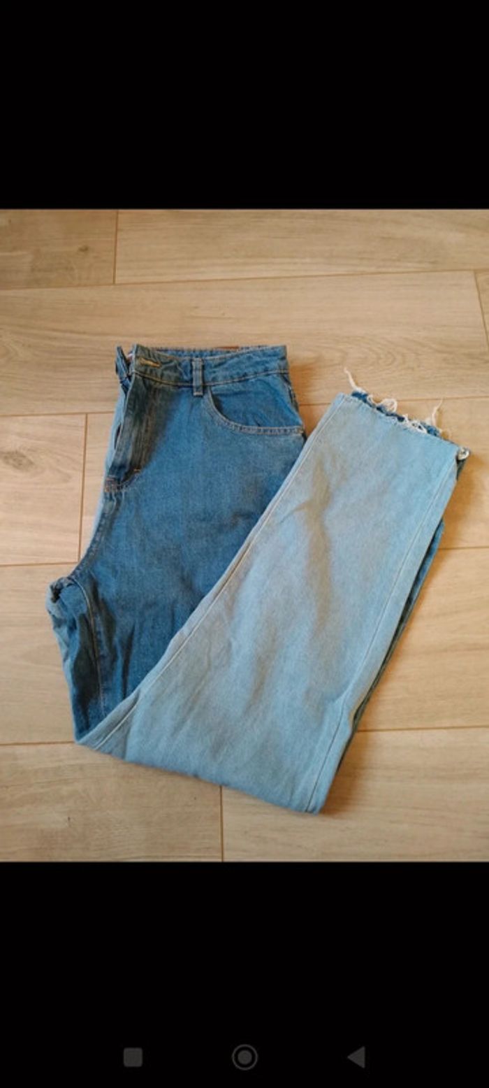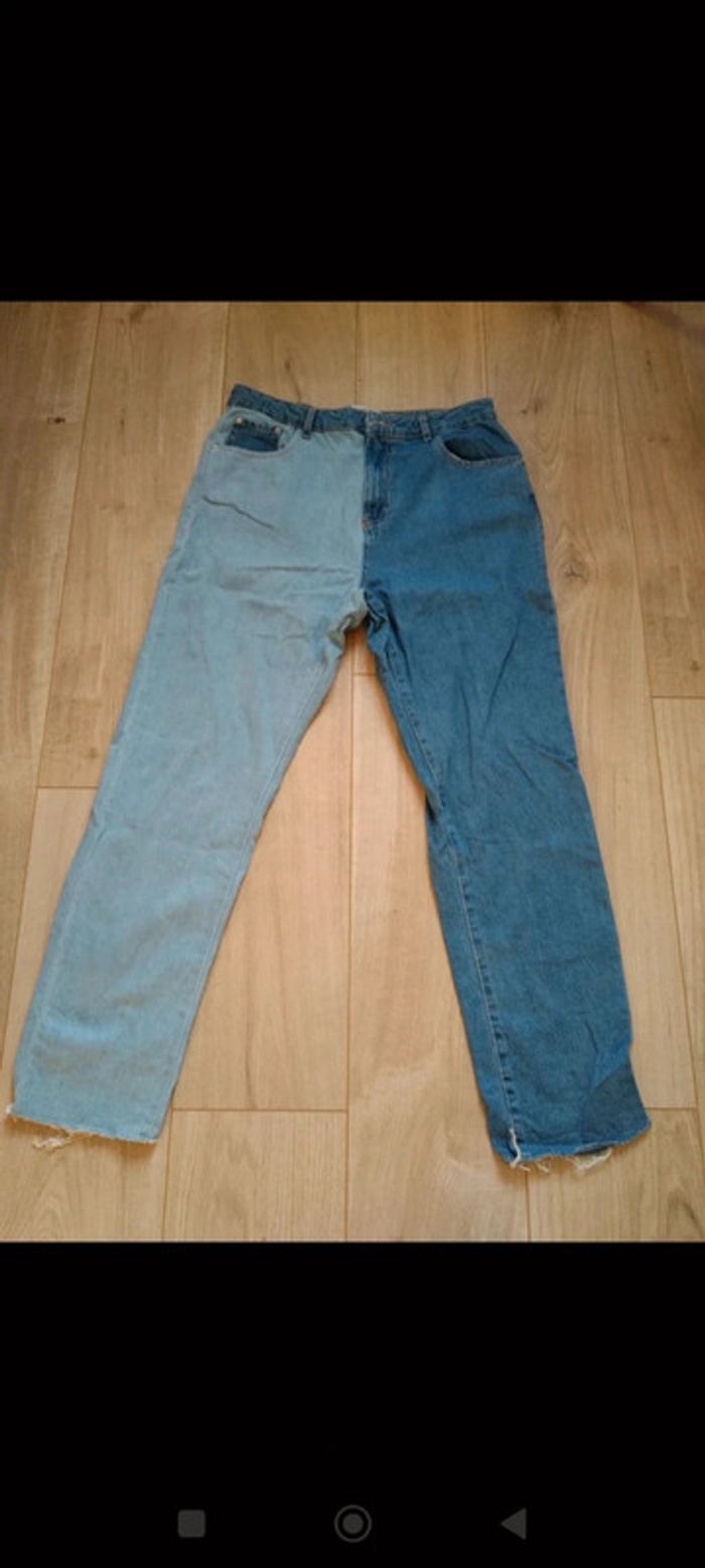 Jeans mom taille 40 Bicolore, Une jambe bleu et une jambe bleu ciel, devant comme derrière, poches devant et derrière Fermeture par bouton et braguette Effiloché en bas du pantalon Peu porté, ne convient pas à ma morphologie #carbelltaille40femme