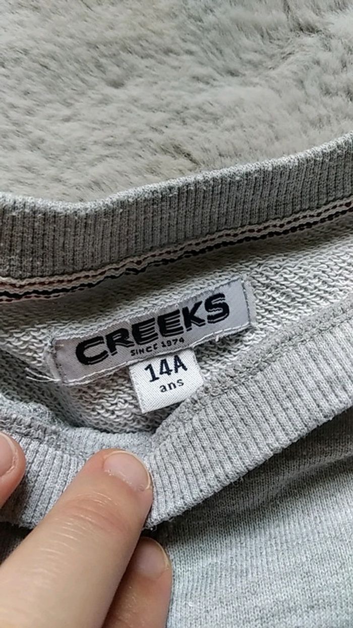 Sweat Creeks Garçon 14 ans Manches longues Couleur gris Petites bouloches 🛑🛑 à noter, une tâche sur le bout de la manche ( photo 4 au bout de mon pouce 👍) Pour cette raison je le mets en satisfaisant. Petit prix, n'hésitez pas à faire un lot ! 🏒🌴 #carbell14ansgarcon Possibilité de baisser les fdp si Envoi par Relais colis ou Mr