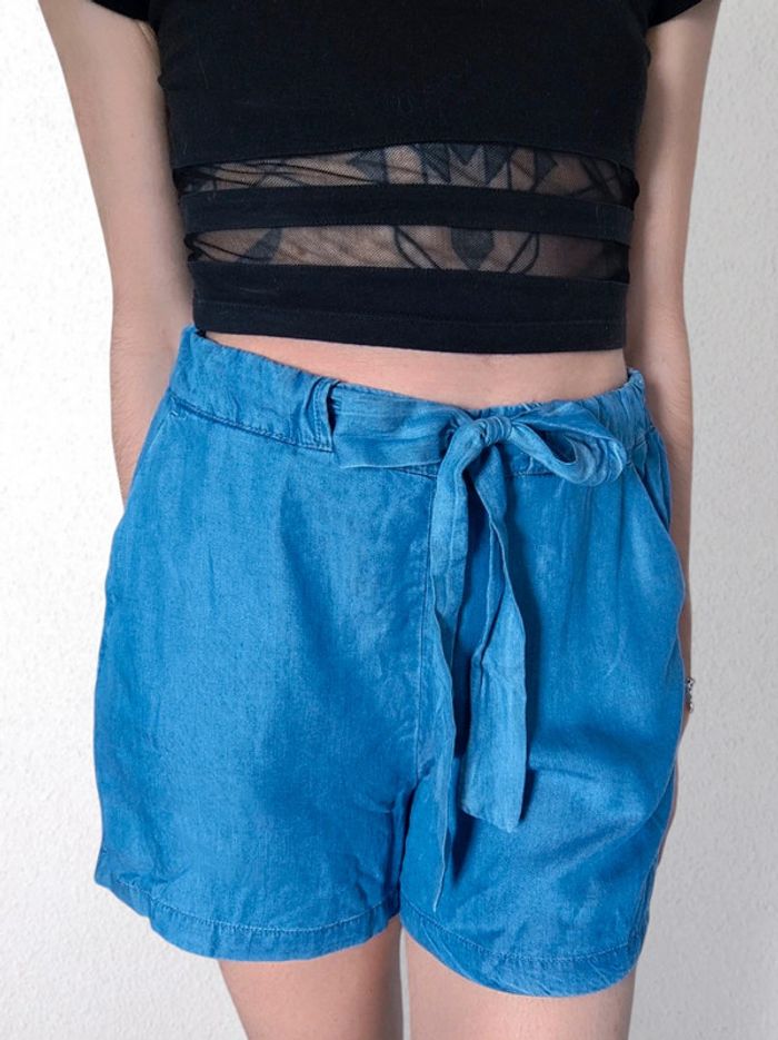 Short taille haute bleu ceinture à nouer écologique / MNG - 38/M à 40/L