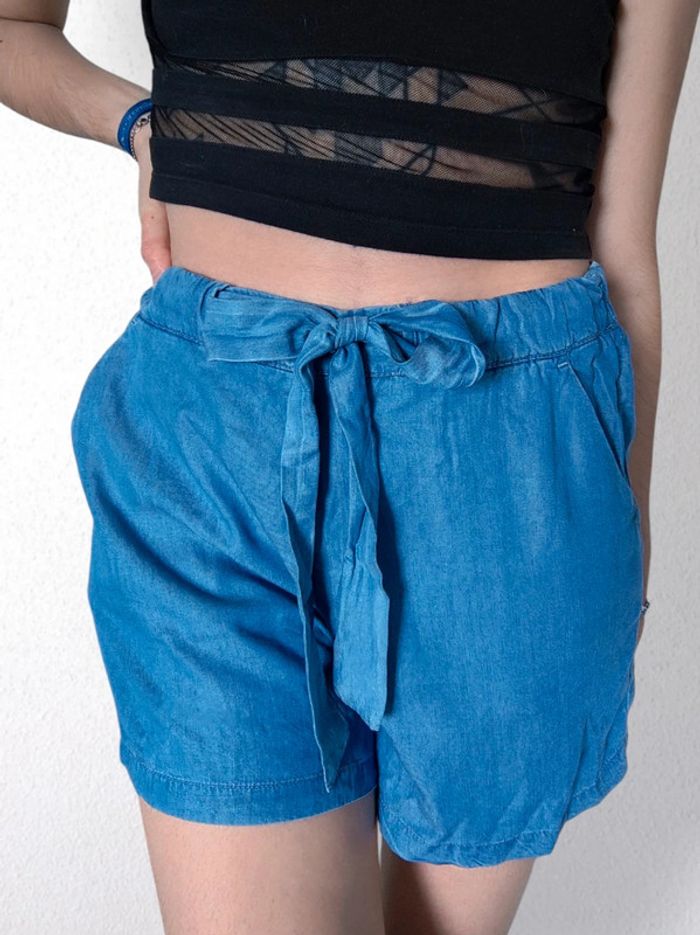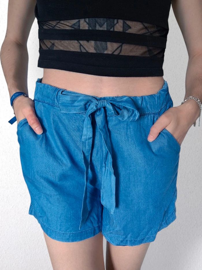 Short taille haute bleu ceinture à nouer écologique / MNG - 38/M à 40/L - photo numéro 1