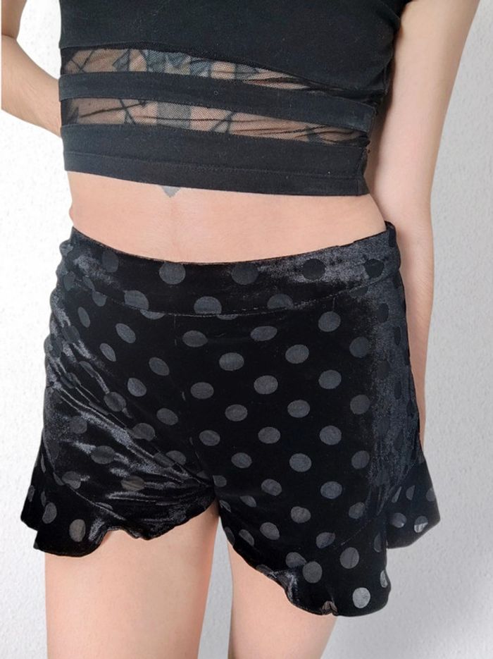 Short taille haute noir velours pois / Mango - 38/M - photo numéro 3