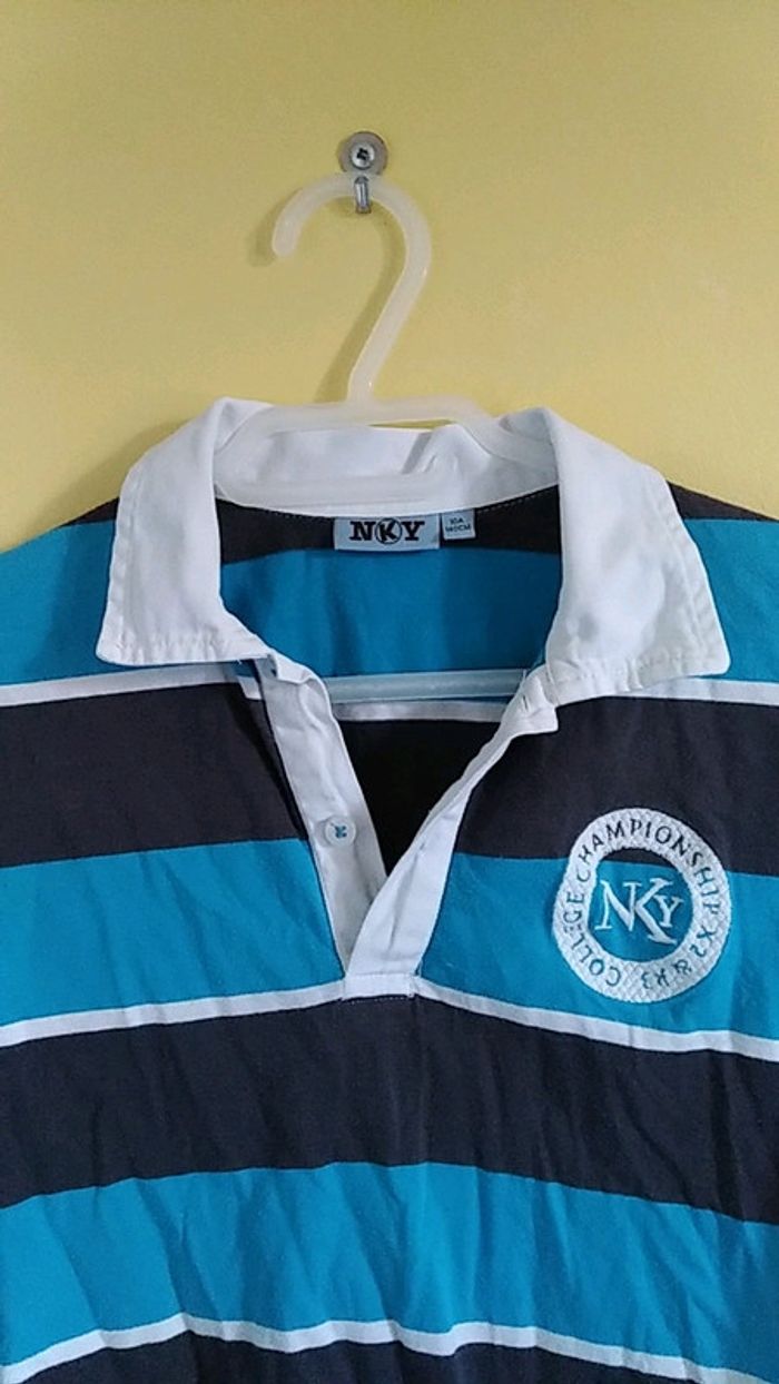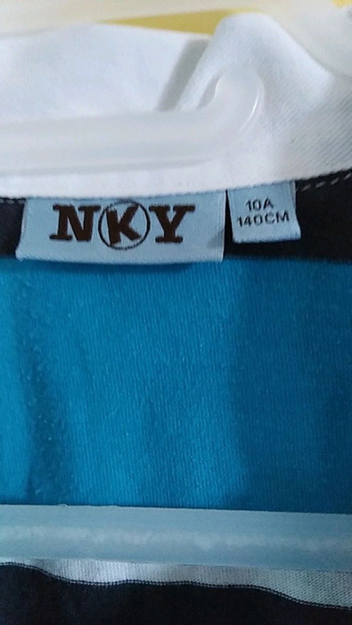 Polo NKY garçon 10 ans Manches longues Rayures Bleues / blanches / noires Bon état #carbell10ansgarcon