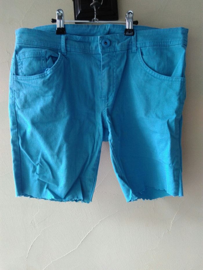 Short bleu . T42. Découpé dans un pantalon. Quelques traces d'usures. 2 poches devant 2 poches arrières. #carbelltaille42femme Marque Kiabi. Possibilité de faire des ourlets.