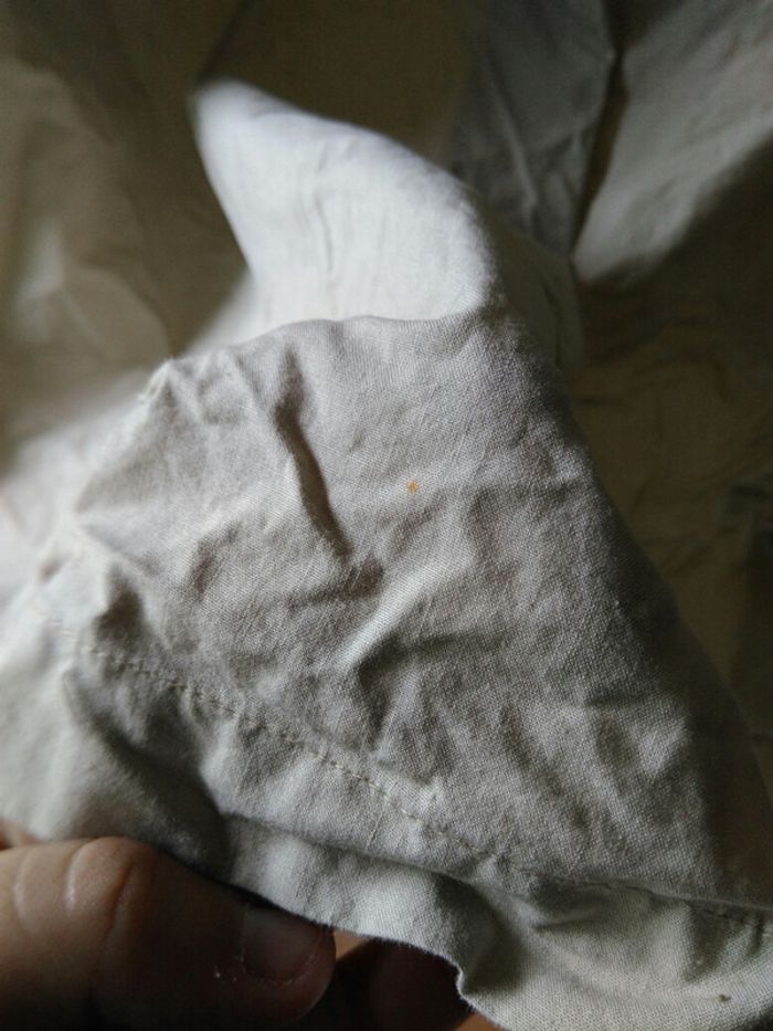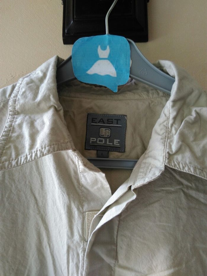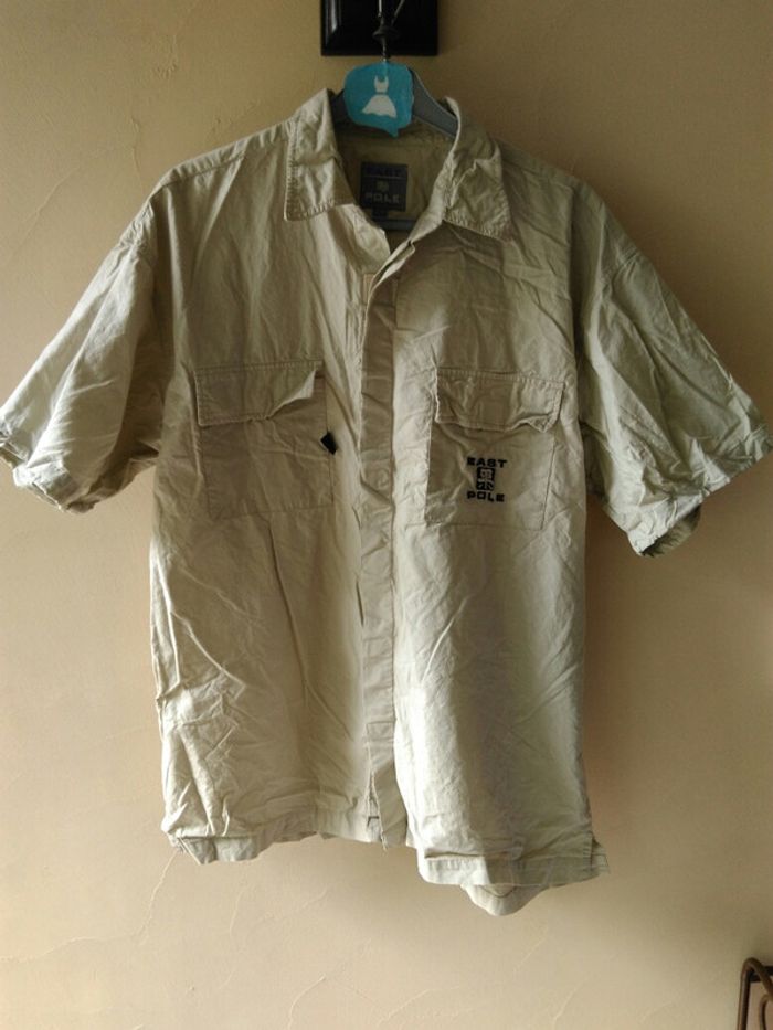 Chemise qui se ferme par scratchs. Couleur beige. À noter une petite tâche derrière, en bas voir photo 2. Taille L #carbellhomme