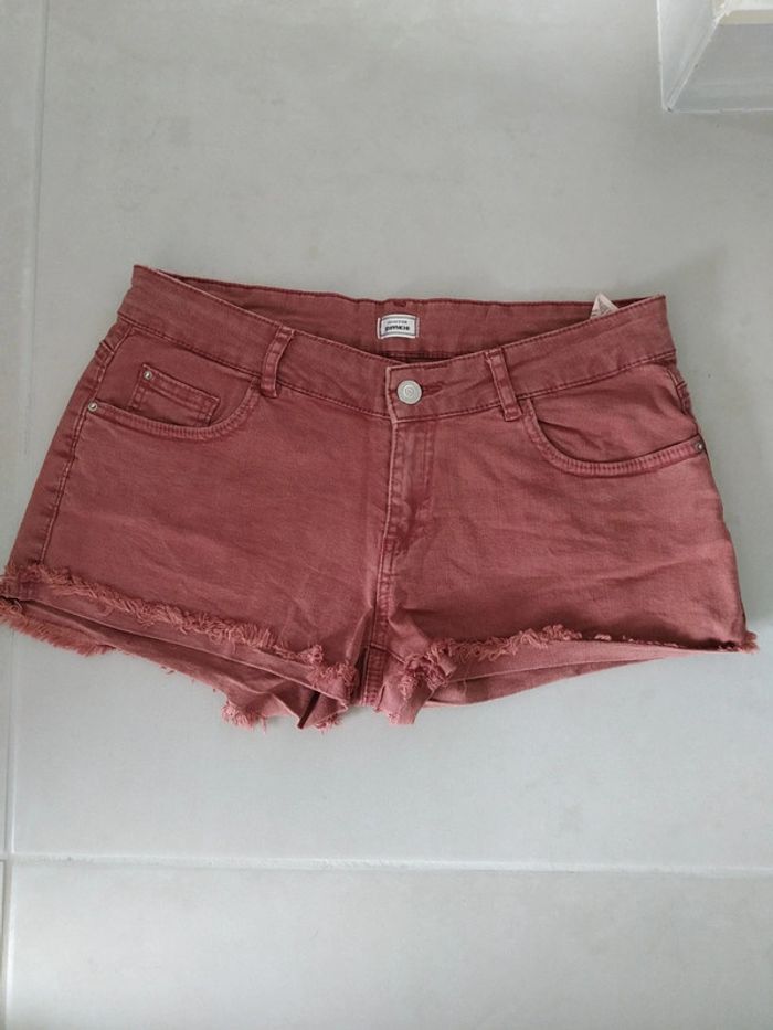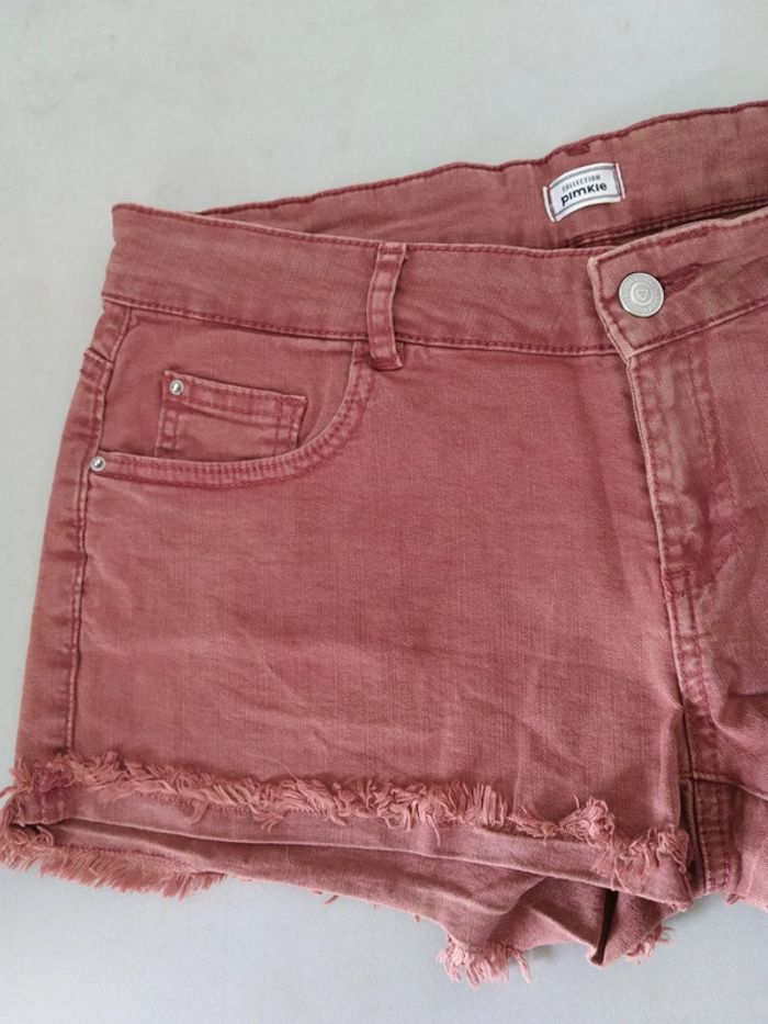 Short en jeans pimkie taille 36 Couleur rouge délavé Avec poches et anses pour ajouter une ceinture Bon état #clem #carbelltaille36femme