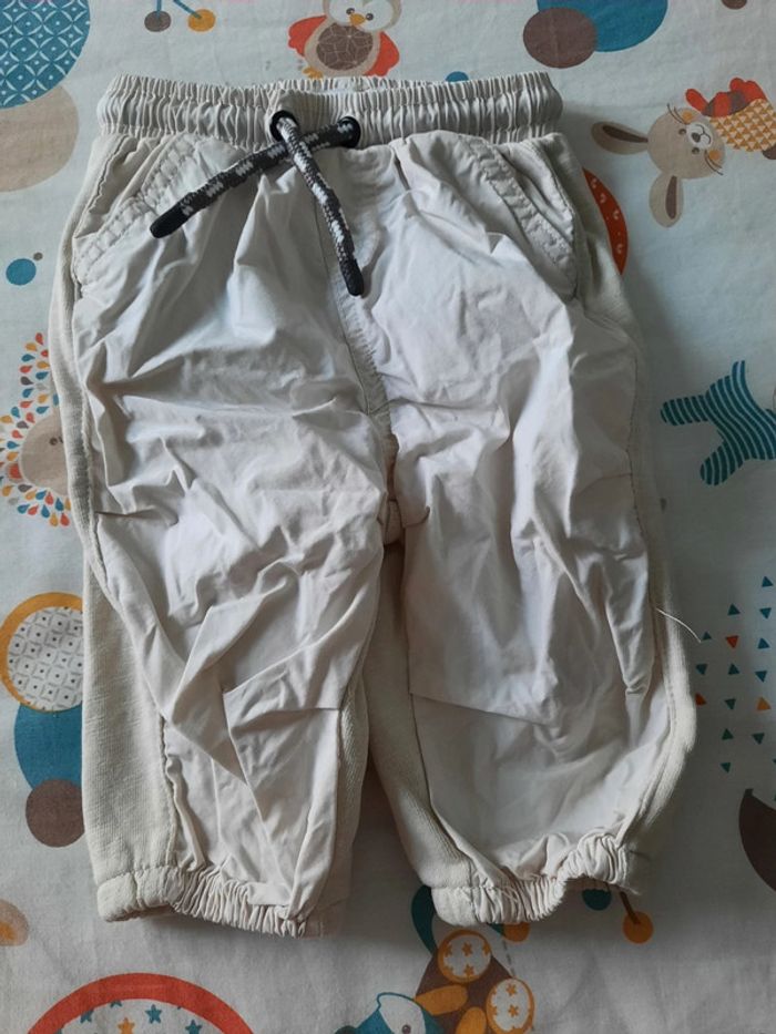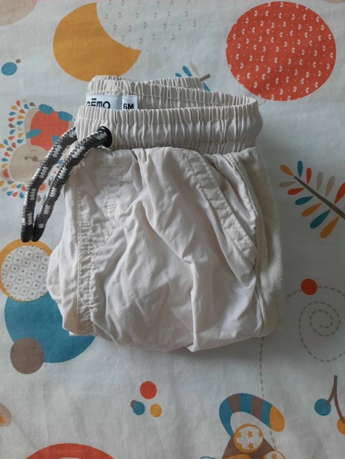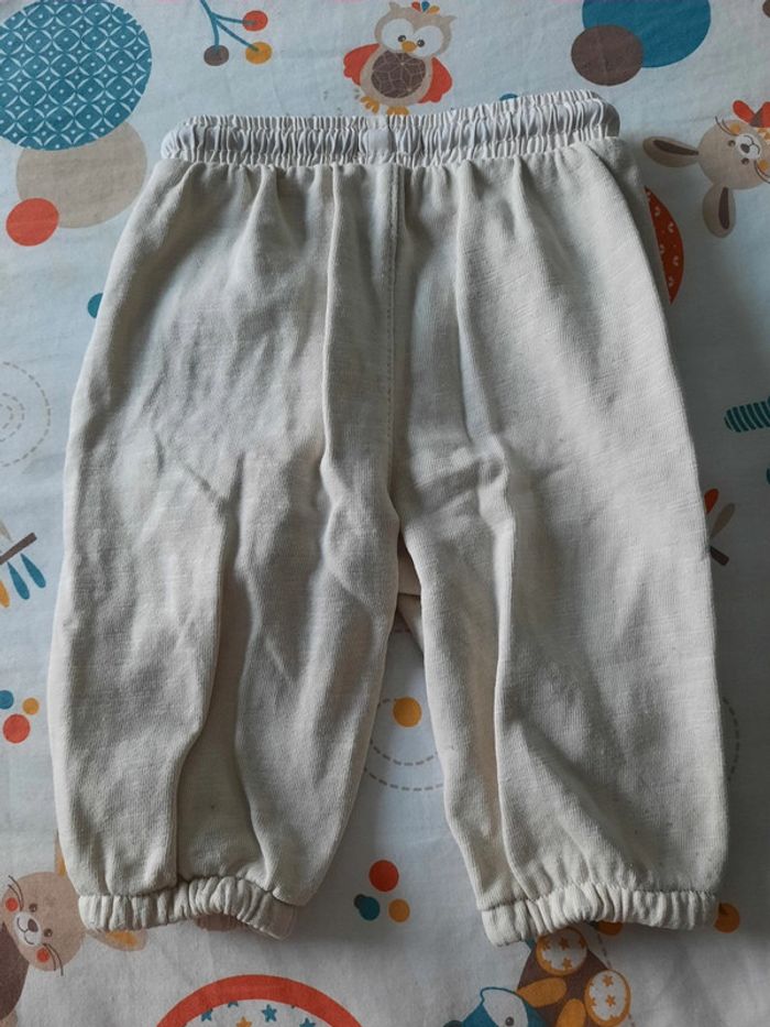 》Pantalon avec poches de couleur beige avec cordon au niveau de la taille et serrage au niveau des chevilles. Bi matière En très bon état. Très peu porté. Proche du neuf. Taille 6 mois