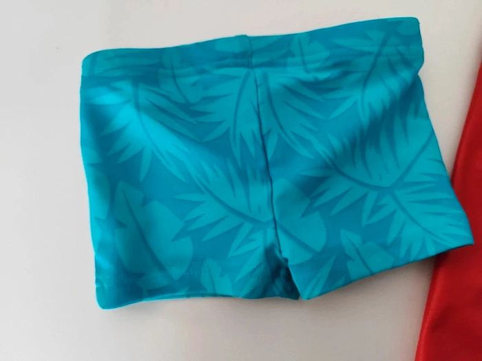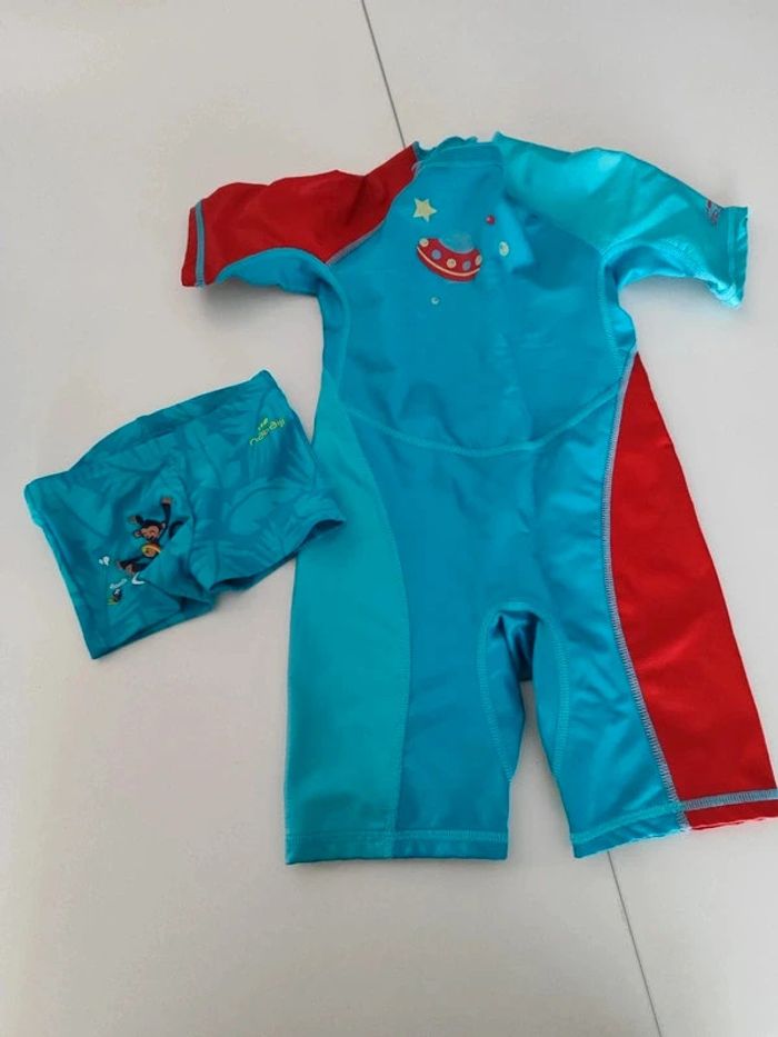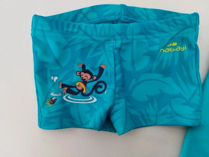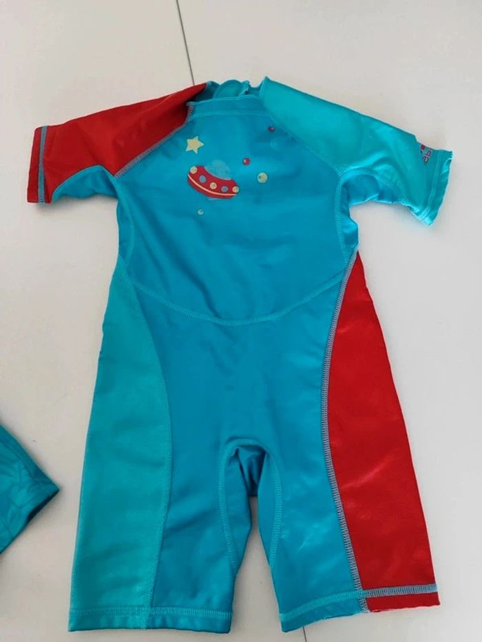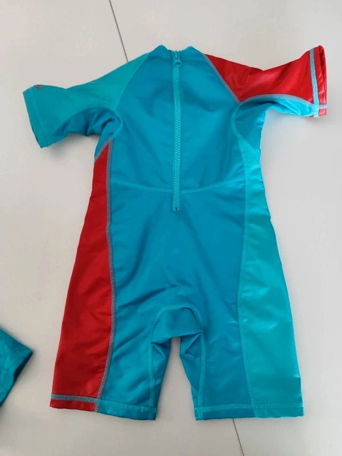 La combi est en 12/18 mois Le maillot de bain 12 mois Il n'y a plus les étiquettes dessus. Très bon etat