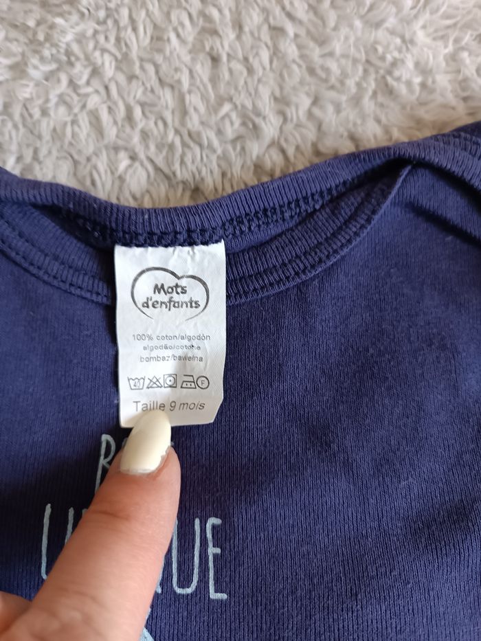 Lot de 2 bodies manche courte taille 9mois en super état Bébé unique 1 kitchoun et 1 mot d'enfants Pensez à faire des lots les remises sont activés. Dressing moderne et à petit prix.