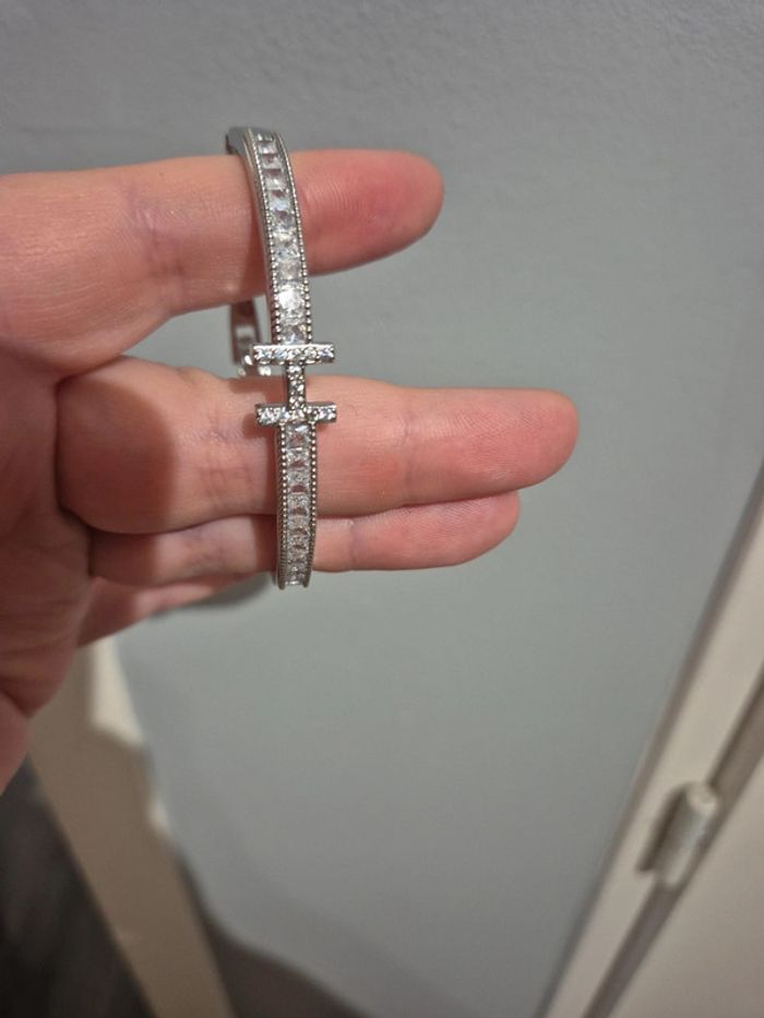 Bracelet jonc argent à strass brillant - photo numéro 1