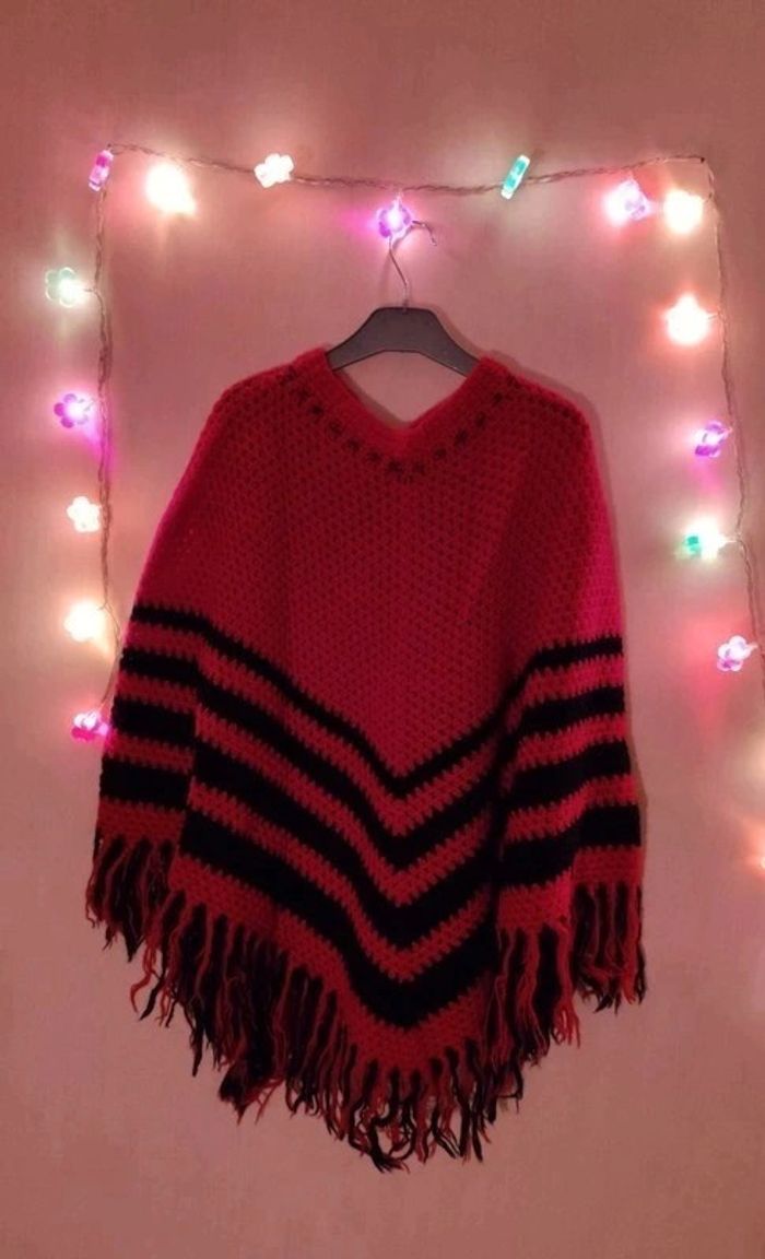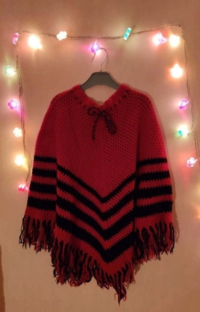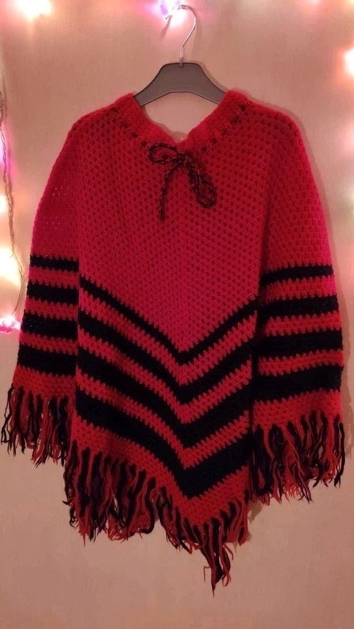 Poncho Vintage 80s Fait Main au Crochet en France 🇨🇵 T.10/12ans