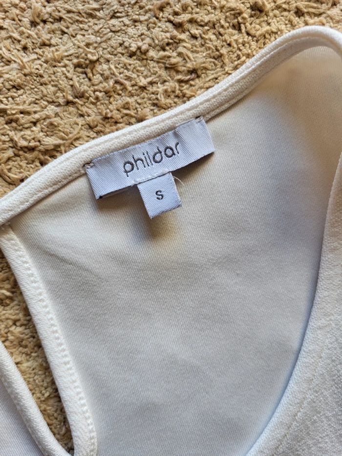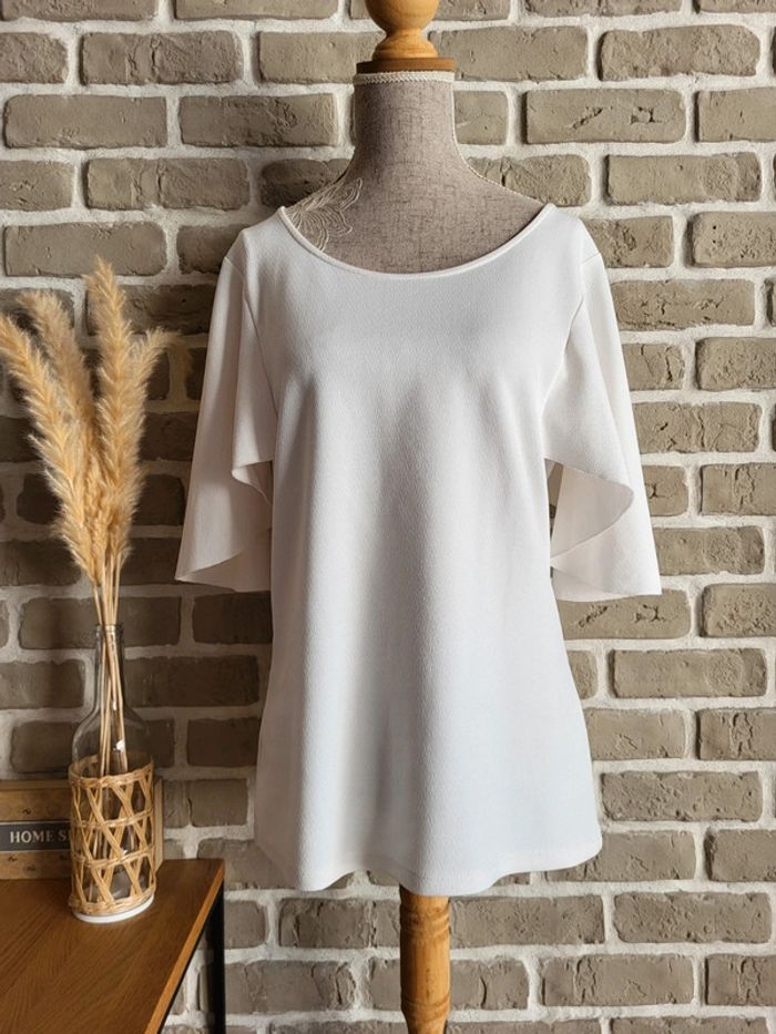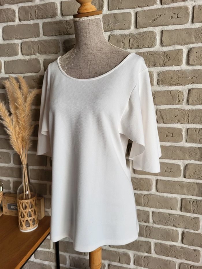 . T-shirt blanc de la marque Phildar EEN très bon état, sans défaut . Simple et chic à la fois avec sa belle matière et ses manches en larges volants . Petit bouton rond et nacré dans la nuque . Idéal pour les cérémonies et pour être porté ensuite au quotidien . Taille S 36 🌸 Et si vous alliez faire un tour dans dressing ? Les réductions sur les lots sont activées 🩷 Féminin
