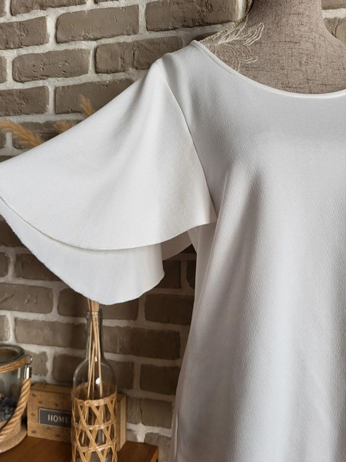 T-shirt blanc chic avec manches volants idéal cérémonie - photo numéro 1
