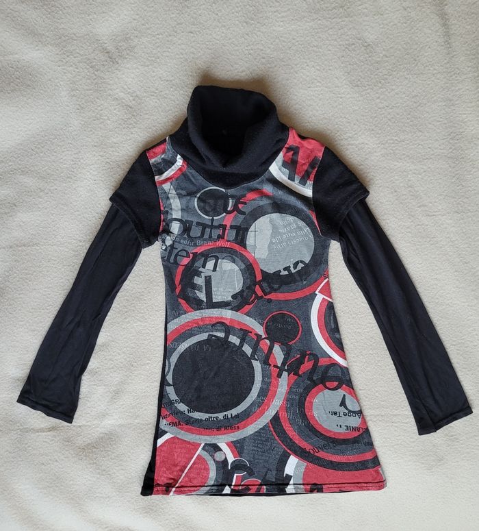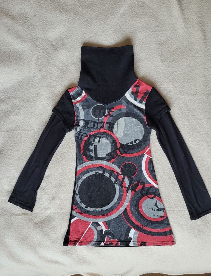 Pull col roulé 8 ans En très bon état Noir, rouge et gris, long