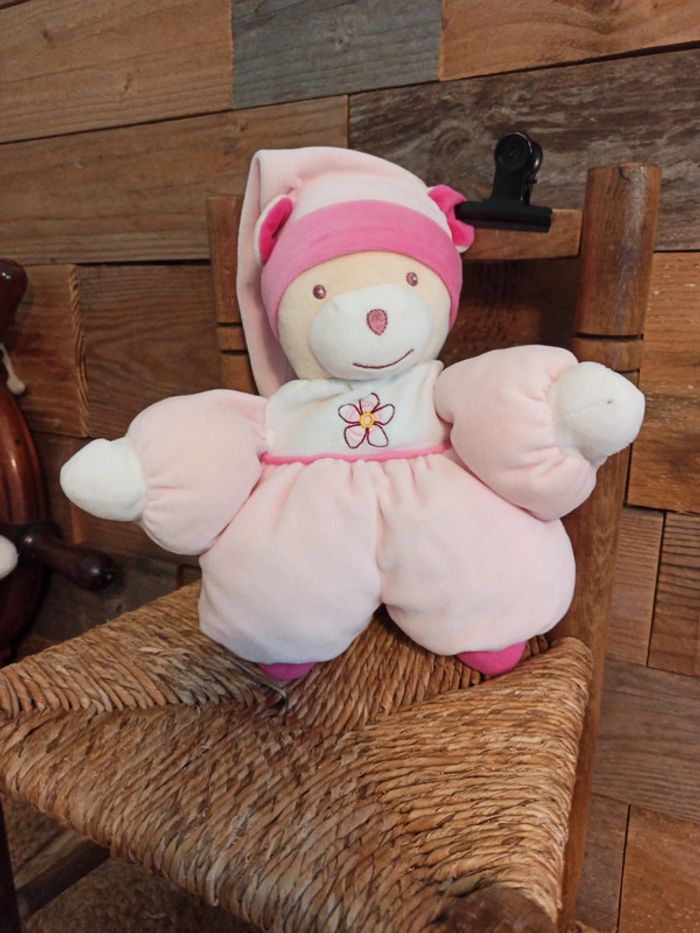 Peluche ours rose avec bonnet Petit fleur Nounours Tbe N'hésitez pas à faire un lot pour économiser sur les frais de port Pour voir les autres articles de la même catégorie : #badaboooom_peluches #badaboooom_nounours
