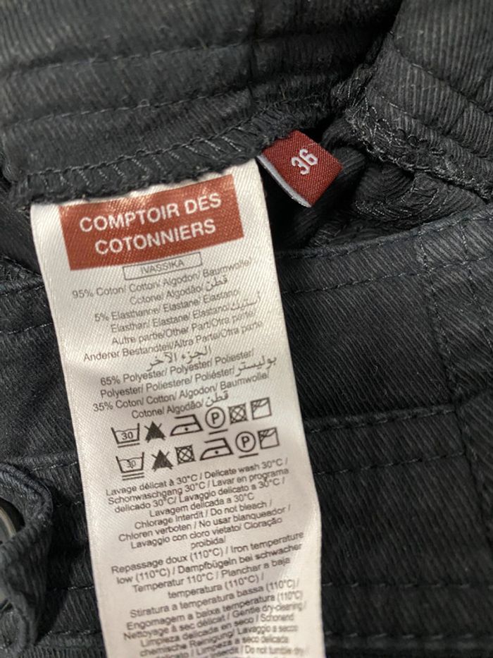 Beau pantacourt Comptoir des cotonniers Taille S 36 noir Taille haute longueur total 90 cm entrejambe 64cm Très bon état il y avait parcontre eu une reprise au niveau des fesses qu’il faudra peut-être reprendre voir dernière photo d’où le petit prix