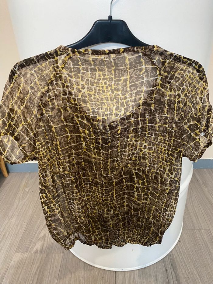 Blouse manches courtes transparente Taille 36 couleur marron / jaune Très bon état