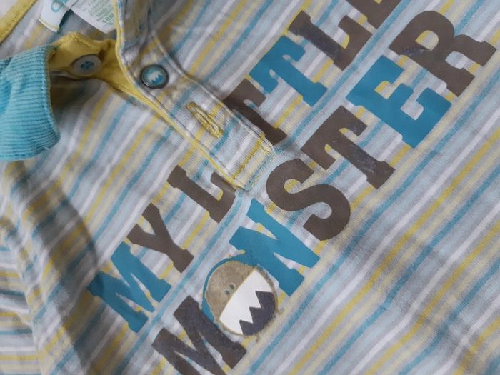 Tee shirt manches longues Coudiere et col côtelés Mitif rayé Inscription "My little monster" #anthonyagnes_bebe18M