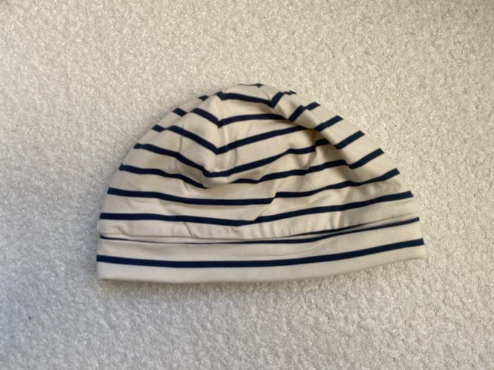 Bonnet bébé beige/marine 3/6 mois 41 cm