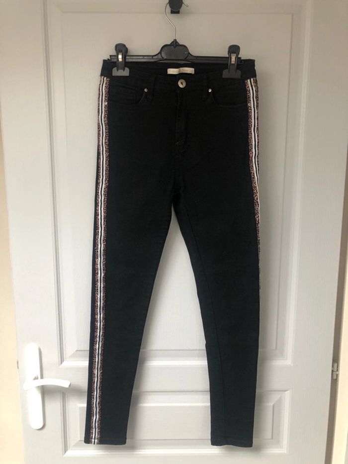 Jean noir femme taille38 détaille léopard sur les côtés - photo numéro 1