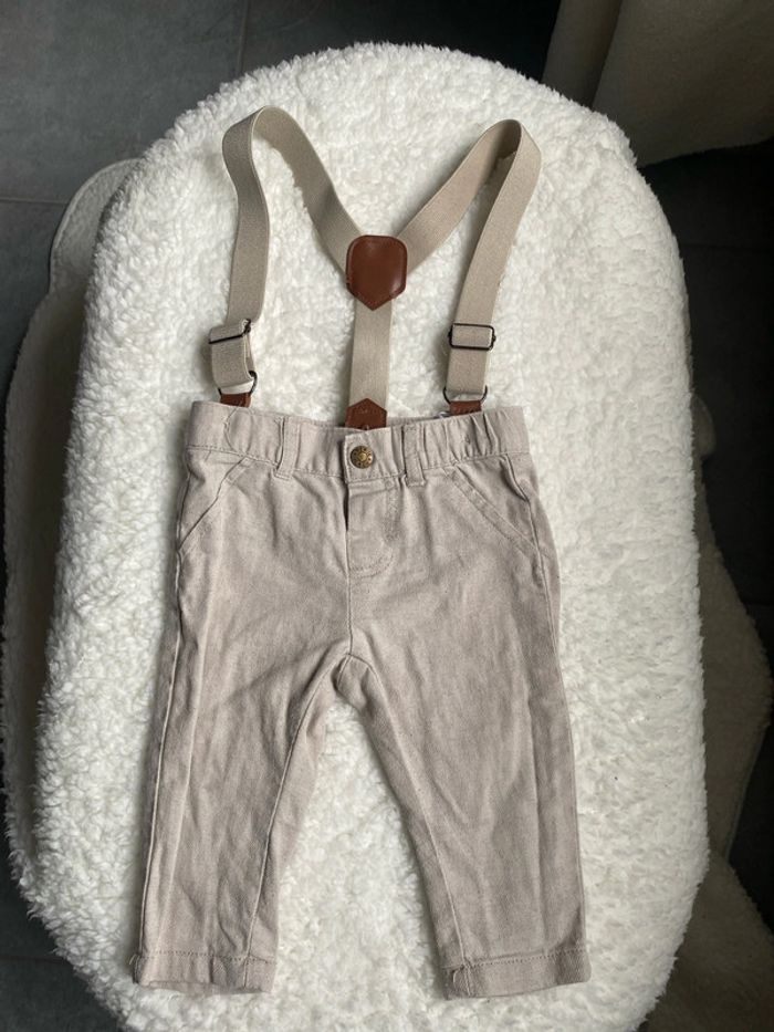 Pantalon beige avec bretelles garçon 6mois