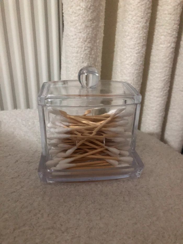 Rangement coton tige transparent