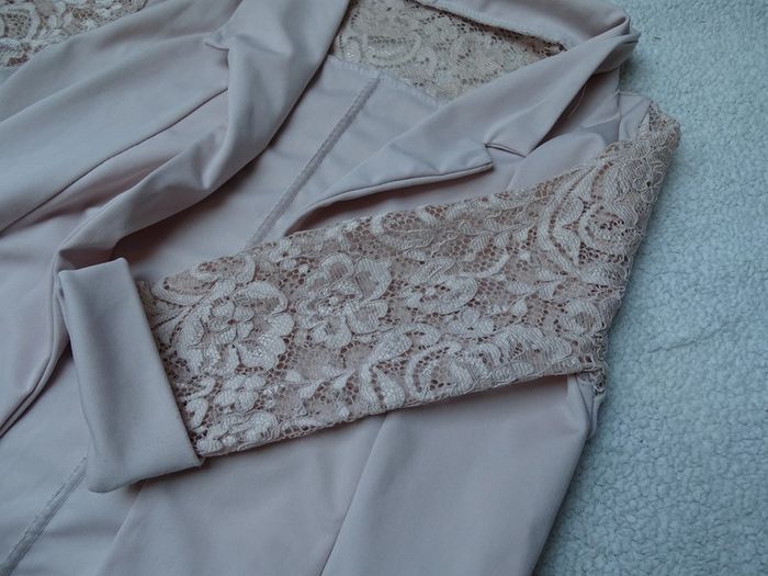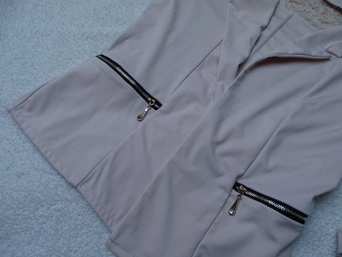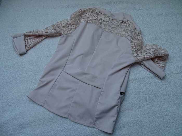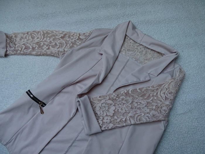 Joli blazer rose pâle, rose nude, manches 3/4 en dentelle, dentelle également en haut du dos, coupe cintrée, deux fausses poches avec zip doré. Très chic, idéal pour les cérémonies estivales. #mariegeove36femme N'hésitez par à regarder mon dressing pour faire un lot, envoi rapide et soigné. Mon dressing sera mis en veille à partir du 9 juin prochain, pour un durée indéterminée, n'hésitez pas si vous êtes intéressé.