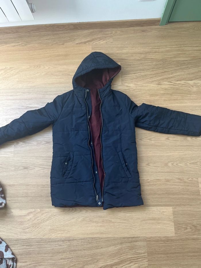 Manteau referai le bleu marine et bordeaux Capuche, multi poche Décousu sur une poche (voir photo)