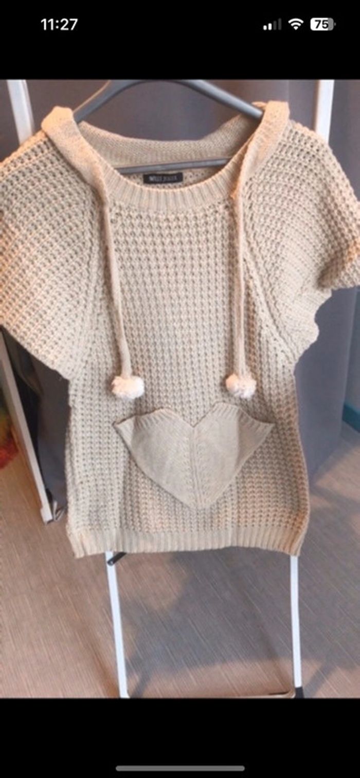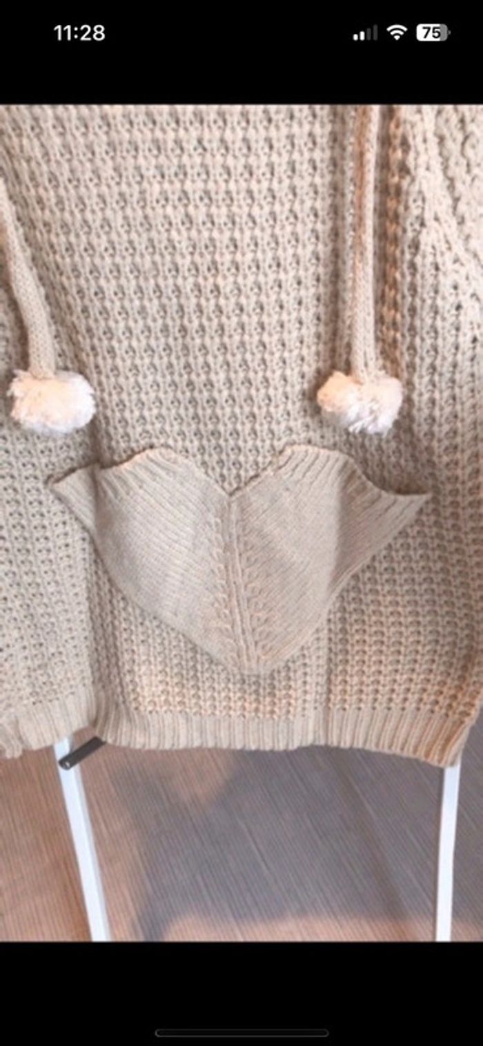 Robe pull grosse maille avec une capuche et une poche kangourou devant