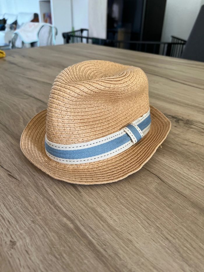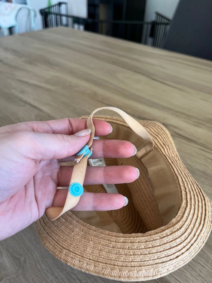 Chapeau avec attache pour éviter que l’enfant le retire (fait maison) Taille 49 En très bon état