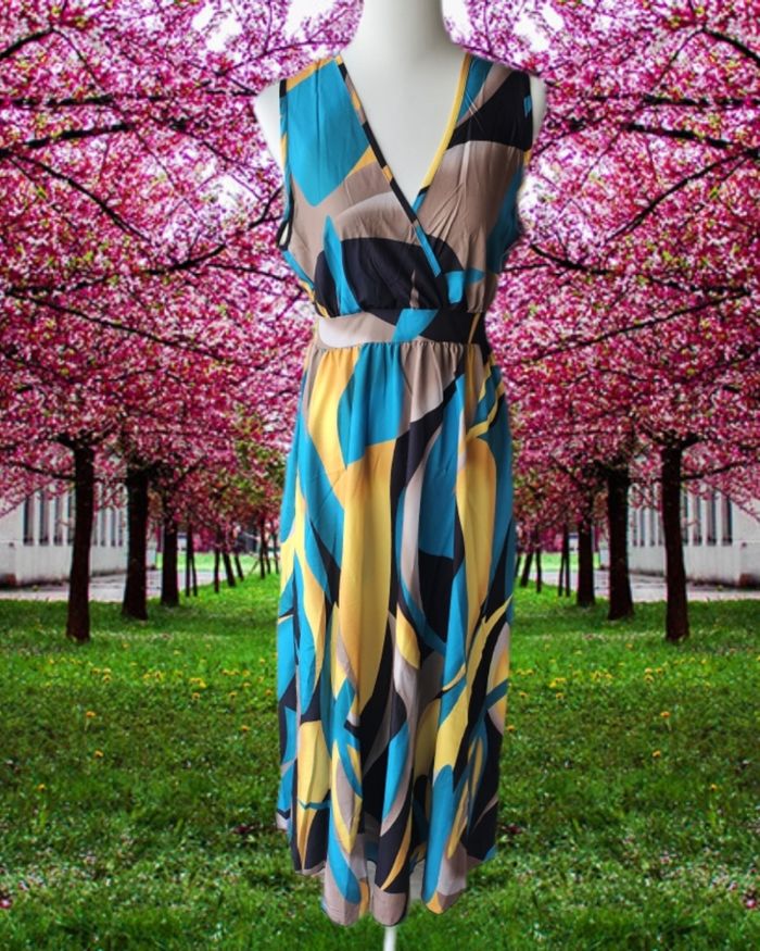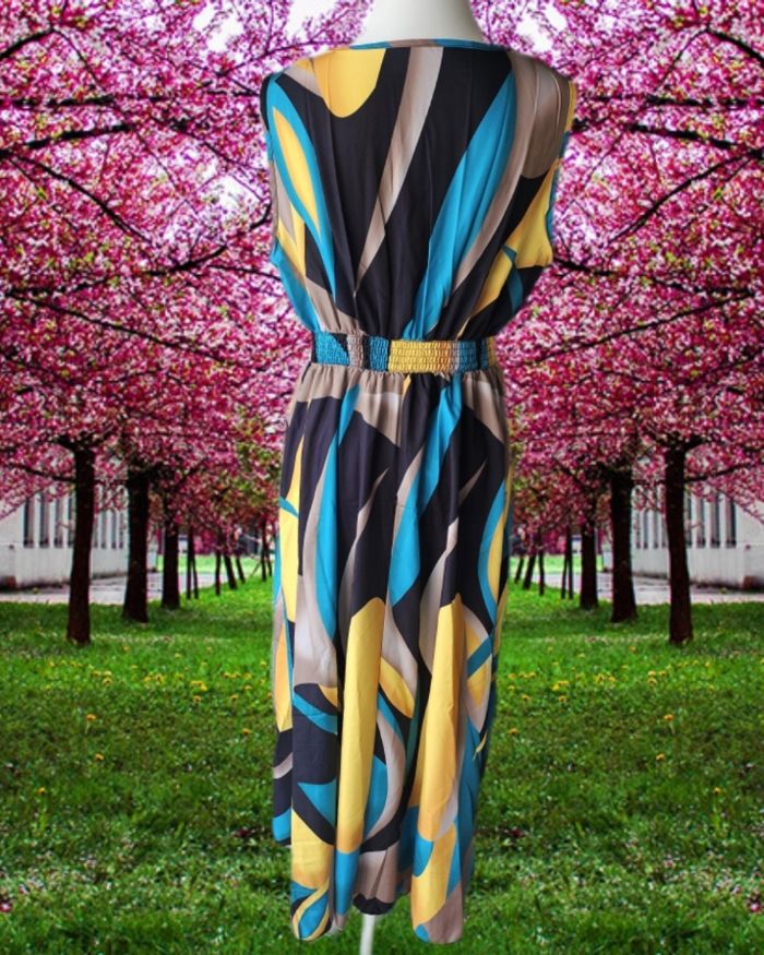 Robe longue multicolore Sans marque Taille M Tres bon état ( portée 1 fois) 100% polyester Aisselles à Aisselles : 41 cm Hanches: 47 cm Longueur: 127 cm Élastique à la taille et au dos