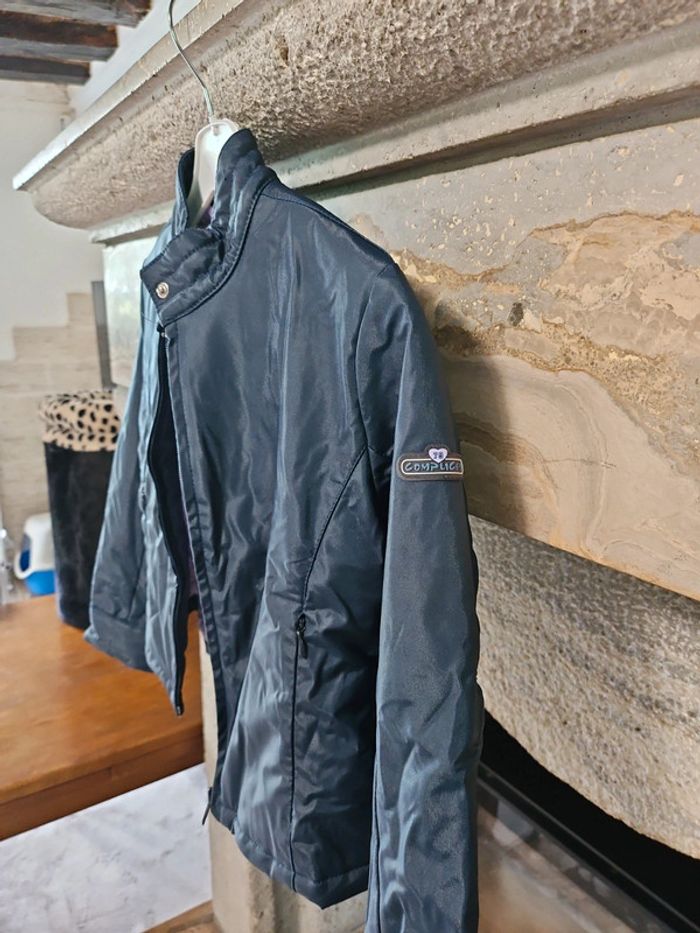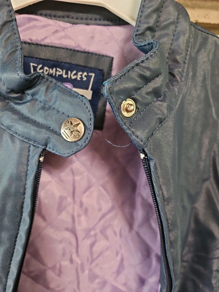 Vestes blazer fille noir brillante et violette à l'intérieur. Taille 8ans, marque Complices, en très bon état. Fermeture zip + bouton, boutons d'ajustement aux manches. Doubles poches latérales. Idéal veste/ blazer de pluie. #shatenew_8ans