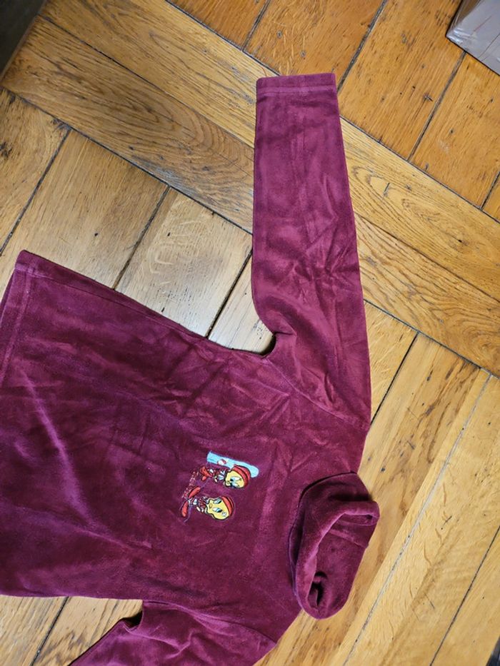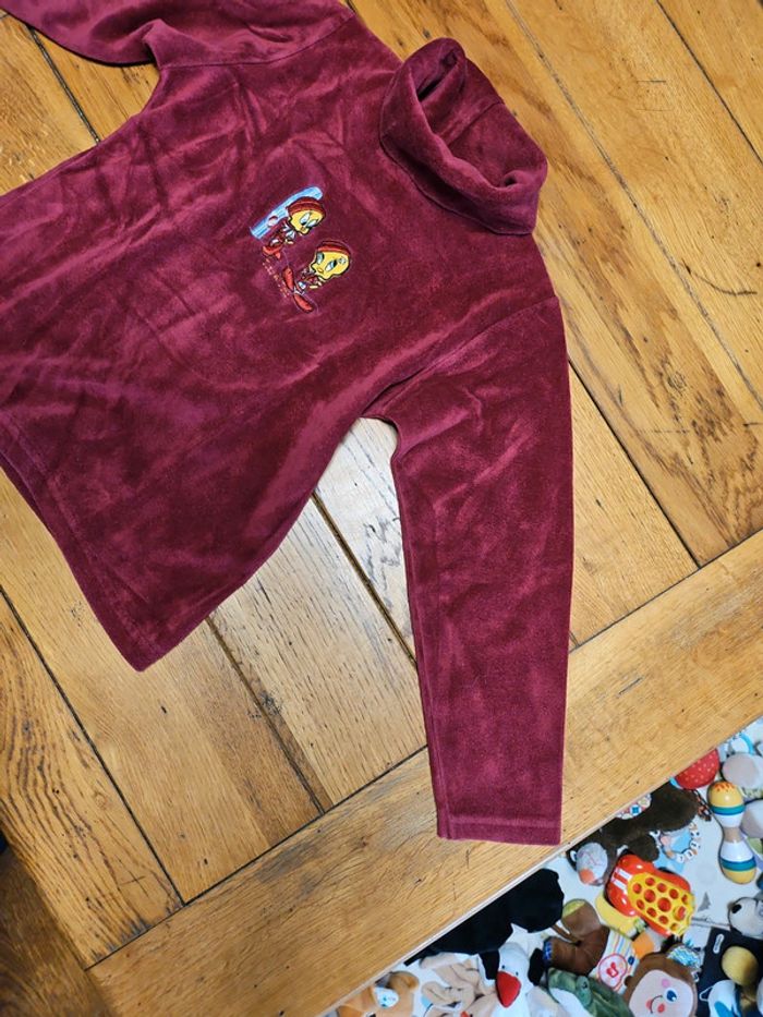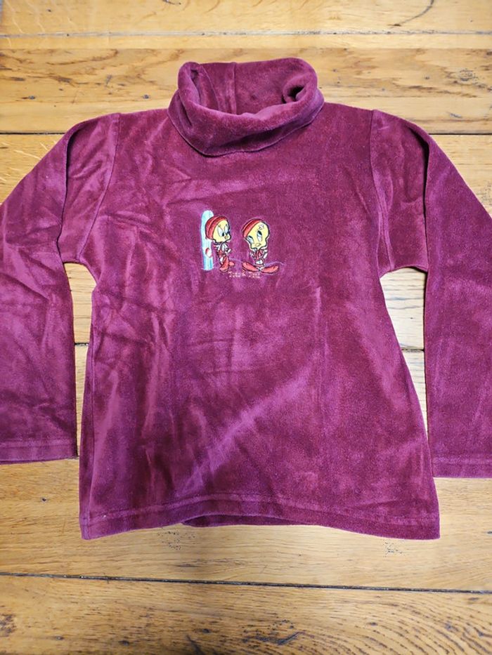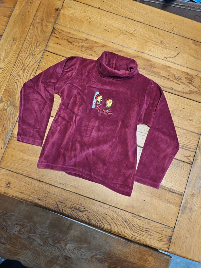 Pull col roulé, couleur bordeaux, motif Titi. Taille 8 ans, en très bon état. Produits officiel Looney Tunes. #shatenew_8ans