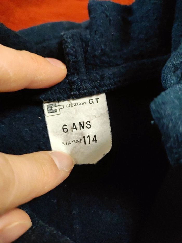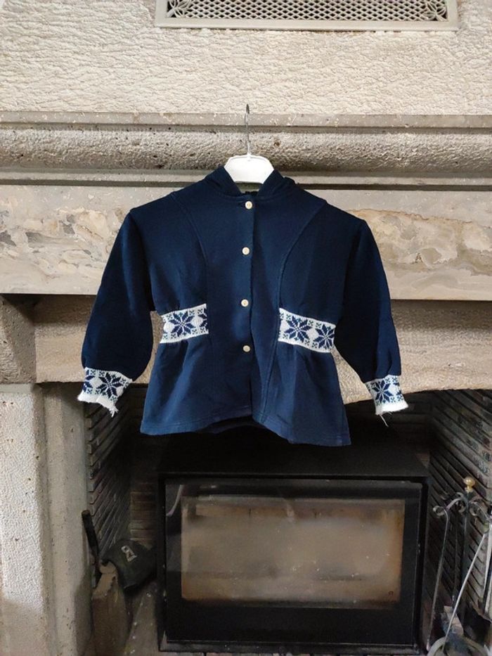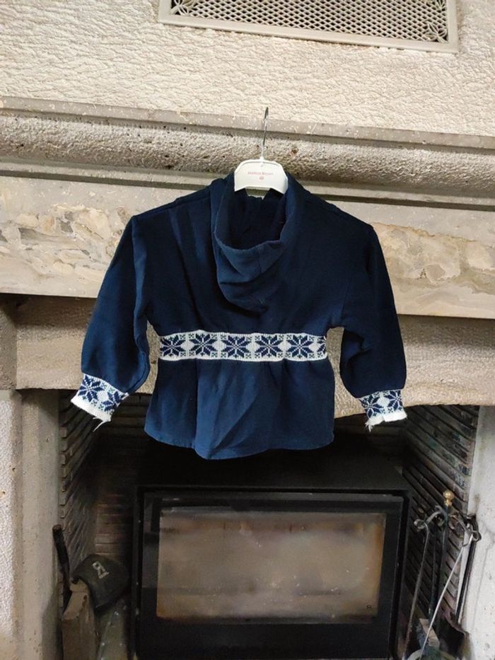 Sweet à capuche bleu marine à motif traditionnel. Fermeture bouton. Marque Génération GT, en bon état. #shatenew_6ans