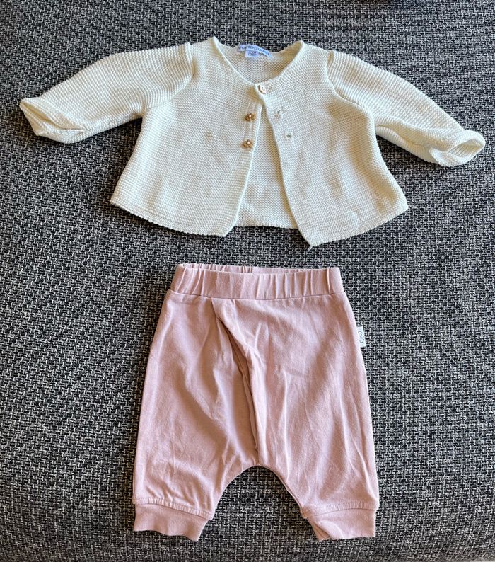 Ensemble Bébé fille 1 mois Vertbaudet Pantalon rose Gilet crème #jessicaeden78fille1mois