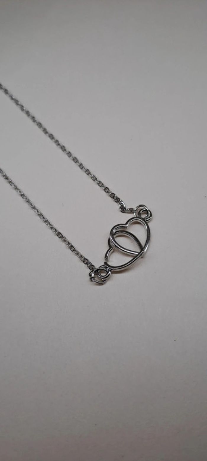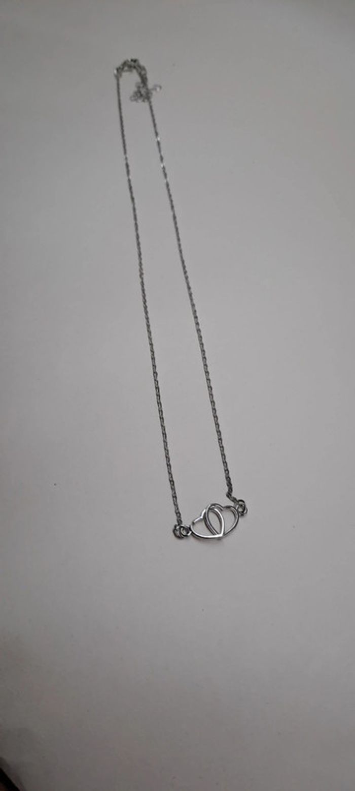 🦚Collier fantaisie jamais portée, de couleur argenté, deux coeur entrelacés. Environ 22cm de long. 🦚Dressing trier par # dans mon "à propos". #gavelotsbijoux