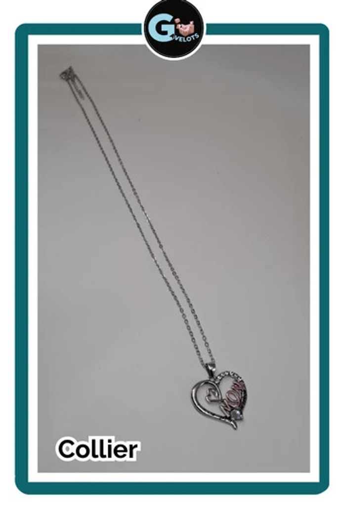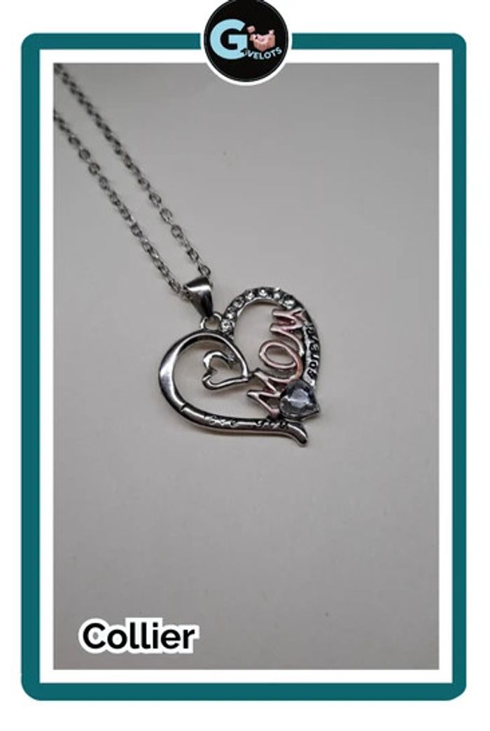 🦚Collier fantaisie neuf de couleur argenté avec pendentif cœur et écriture "MOM". Environ 24.5cm de long. 🦚Dressing trier par # dans mon "à propos". #gavelotsbijoux
