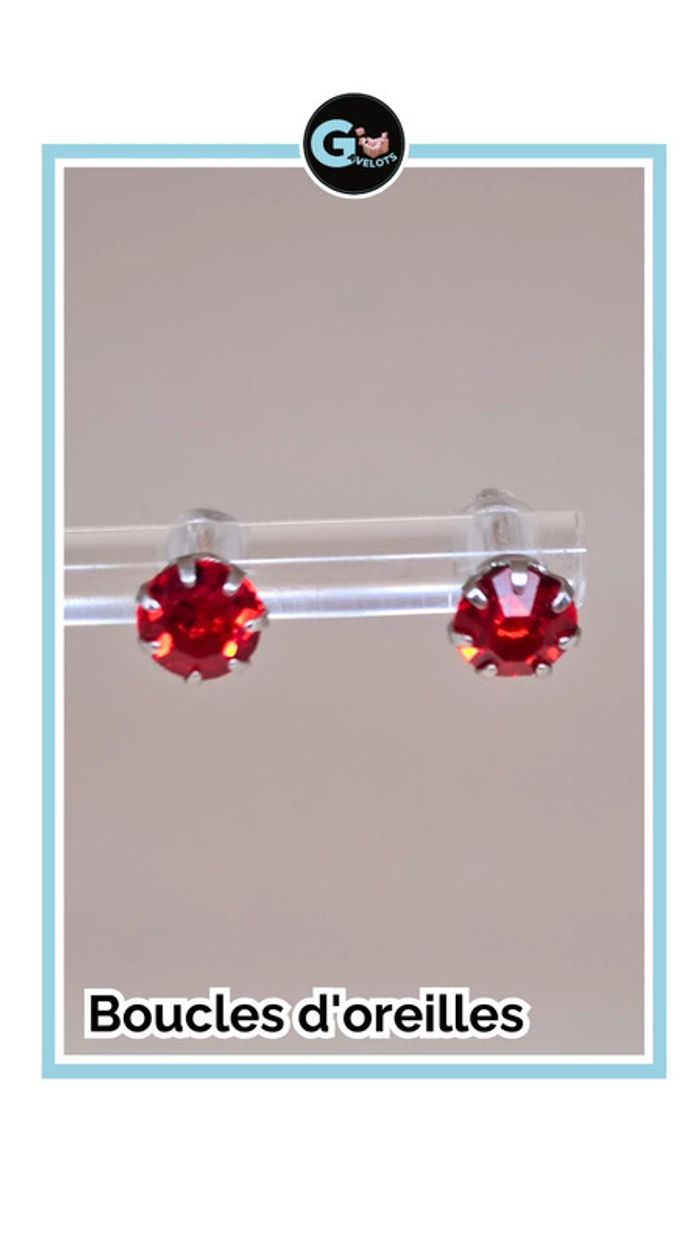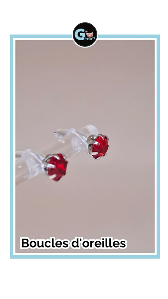 🦚Boucle d'oreilles fantaisie neuve, avec pierre imitation diamant, de couleur argenté et rouge. Diametre 6mm. 🦚Dressing trier par # dans mon "à propos". #gavelotsbijoux #gavelotsBC