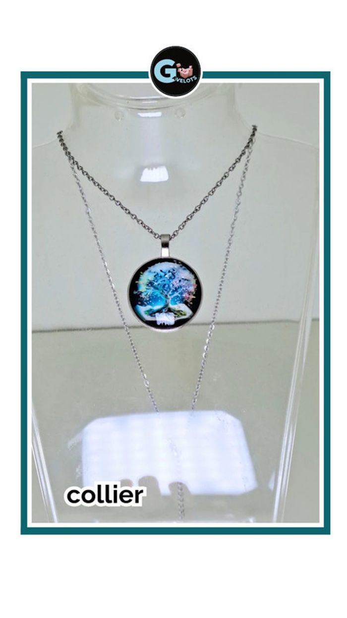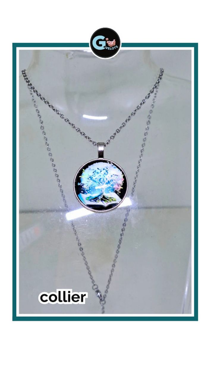 🦚Collier fantaisie symbolisant l arbre de vie sur un livre. Environ 20cm de long. Collier de couleur argenté, en très bon état jamais portée. 🦚Dressing trier par # dans mon " à propos ". #gavelotsbijoux #gavelotscollier