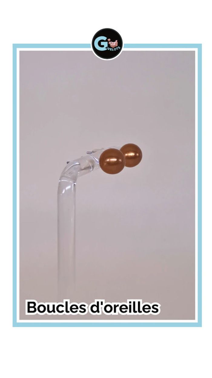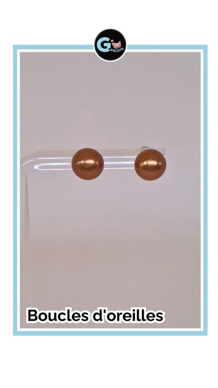 🦚Jolie paire de boucle d'oreilles ronde en fausse perle de couleur cuivre mat , tige argenté et attache plastique. En très bon état, jamais portée. 📏Diamètre des boules environ 8mm 🦚Dressing trier par # dans mon " à propos ". #gavelotsbijoux