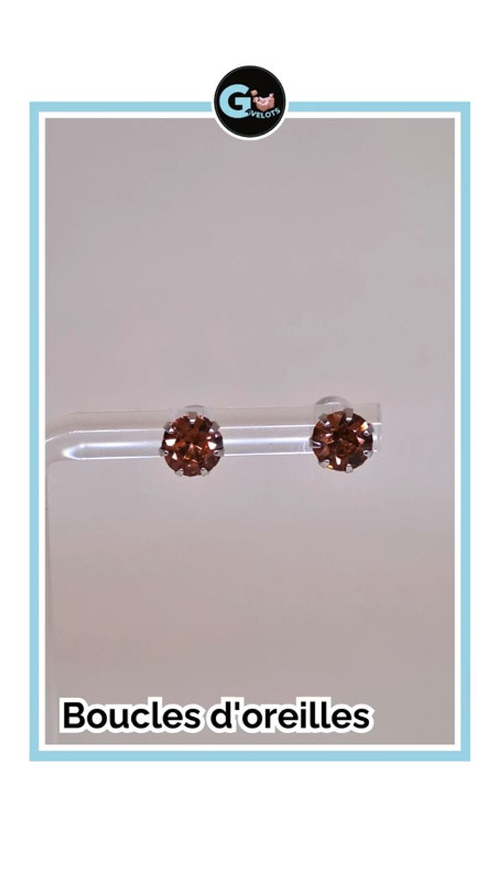 🦚Boucle d'oreilles fantaisie neuve, avec pierre imitation diamant, de couleur argenté et marron clair. Diametre 6mm. 🦚Dressing trier par # dans mon "à propos". #gavelotsbijoux #gavelotsBC