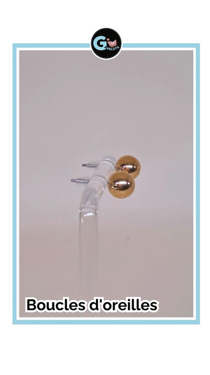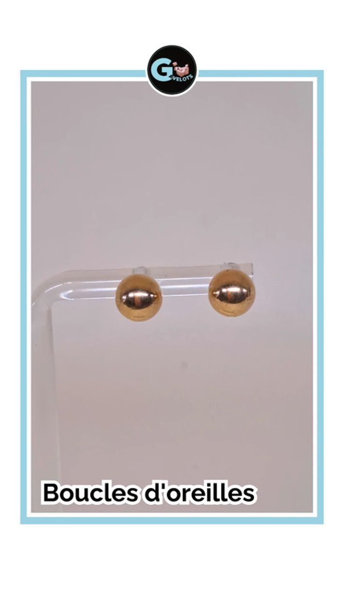 🦚Jolie paire de boucle d'oreilles ronde en fausse perle de couleur or brillant , tige argenté et attache plastique. En très bon état, jamais portée. 📏Diamètre des boules environ 8mm 🦚Dressing trier par # dans mon " à propos ". #gavelotsbijoux #gavelotsBC