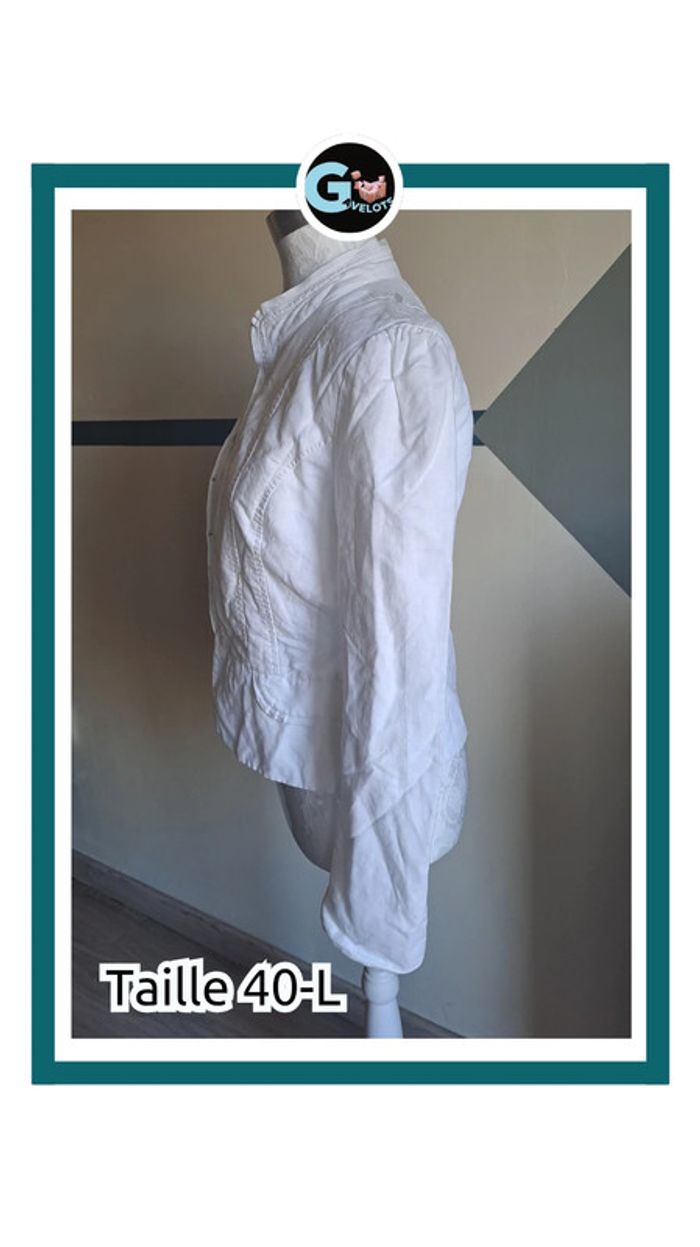 🦚Très joli veste blanche, en très bon état. Marque camaïeu taille 40. 🧵55% Lin, 45% Coton. 🦚Dressing trier par # dans mon " à propos ". #gavelotsT40femme