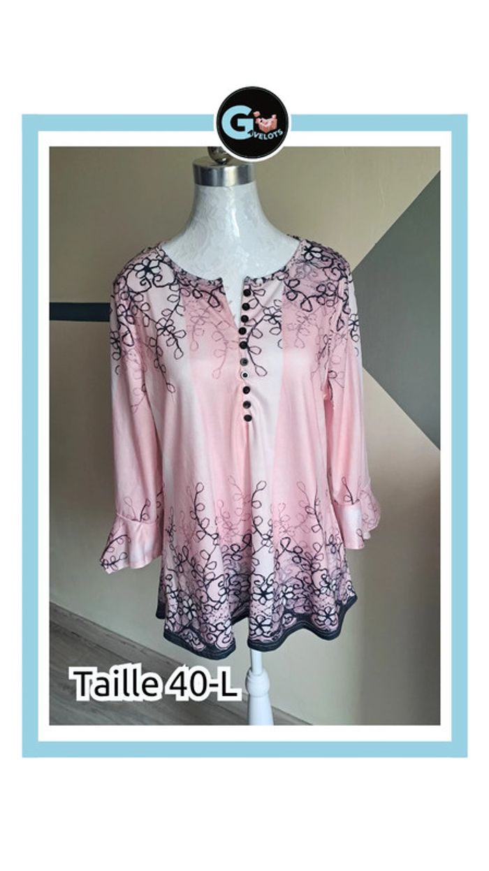 🦚Très jolie haut femme de couleur rose claire. En très bon état jamais portée. Bouton au niveau du col. 🧵95% polyester, 5% spandex 📏Epaule à epaule :42cm 📏Longueur :68cm 🦚Dressing trier par # dans mon " à propos ". #gavelotsT40femme