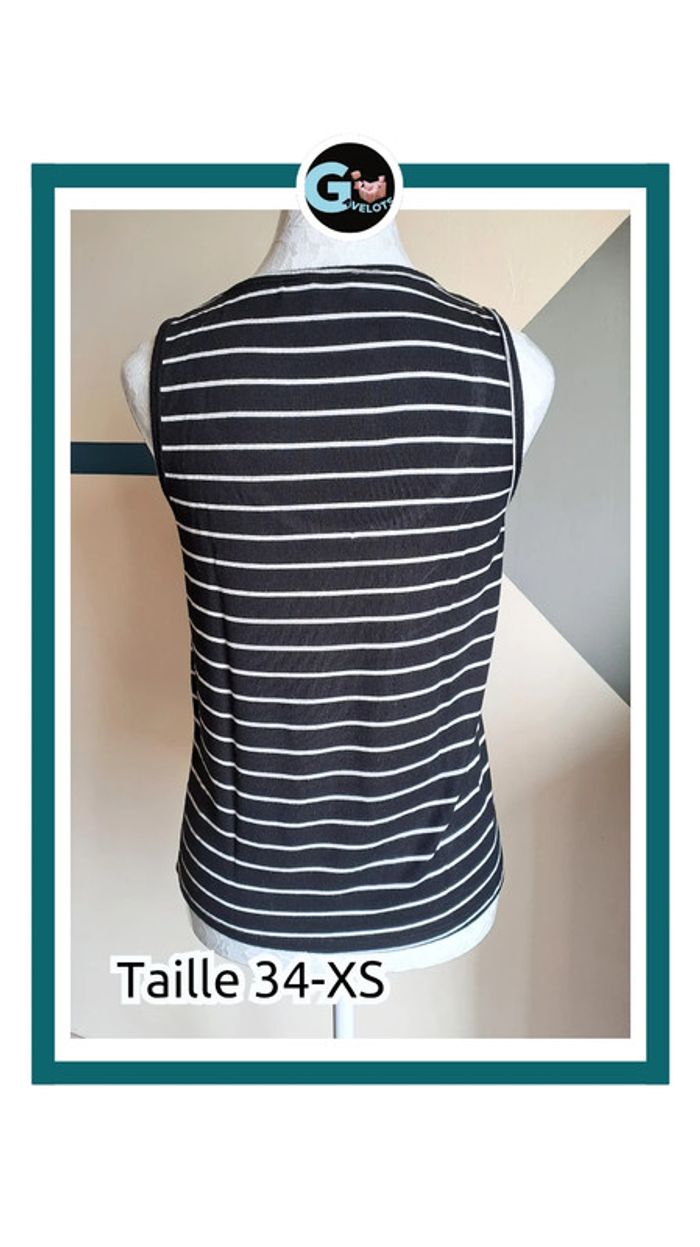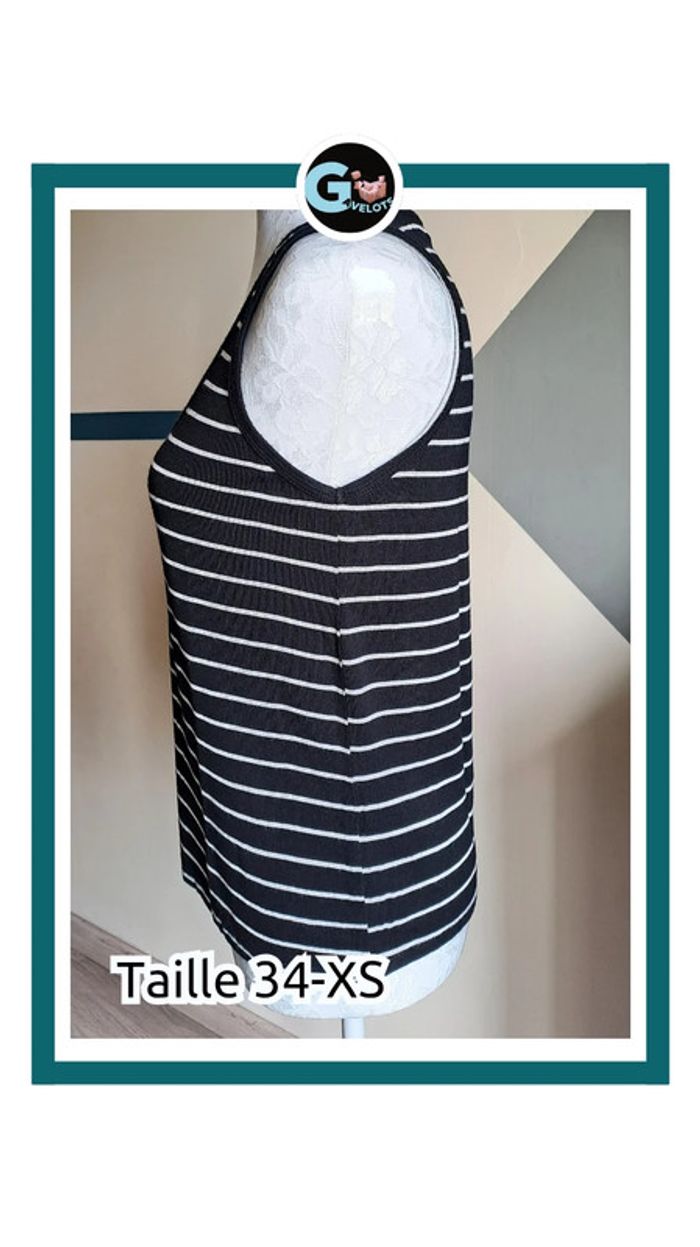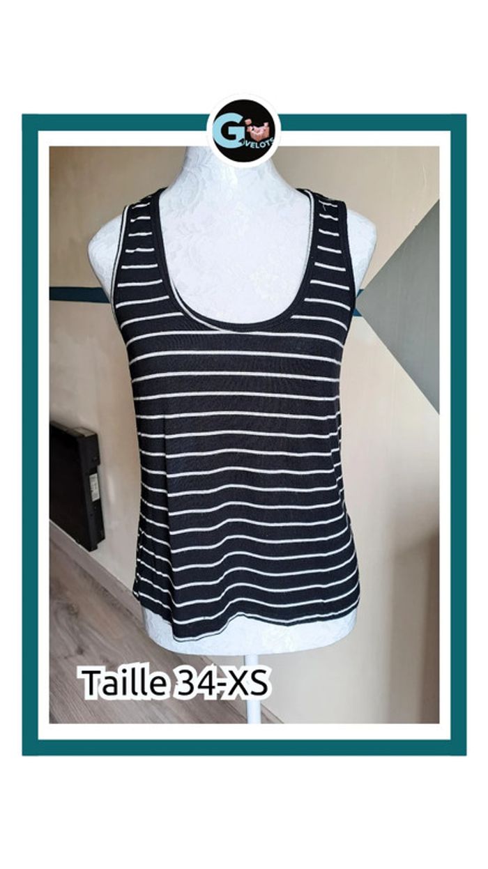 🦚Débardeur en très bon état taille 34-XS. De couleur noir et blanc. 🦚Dressing trier par # dans mon " à propos ". #GAVELOTSTXSFEMME