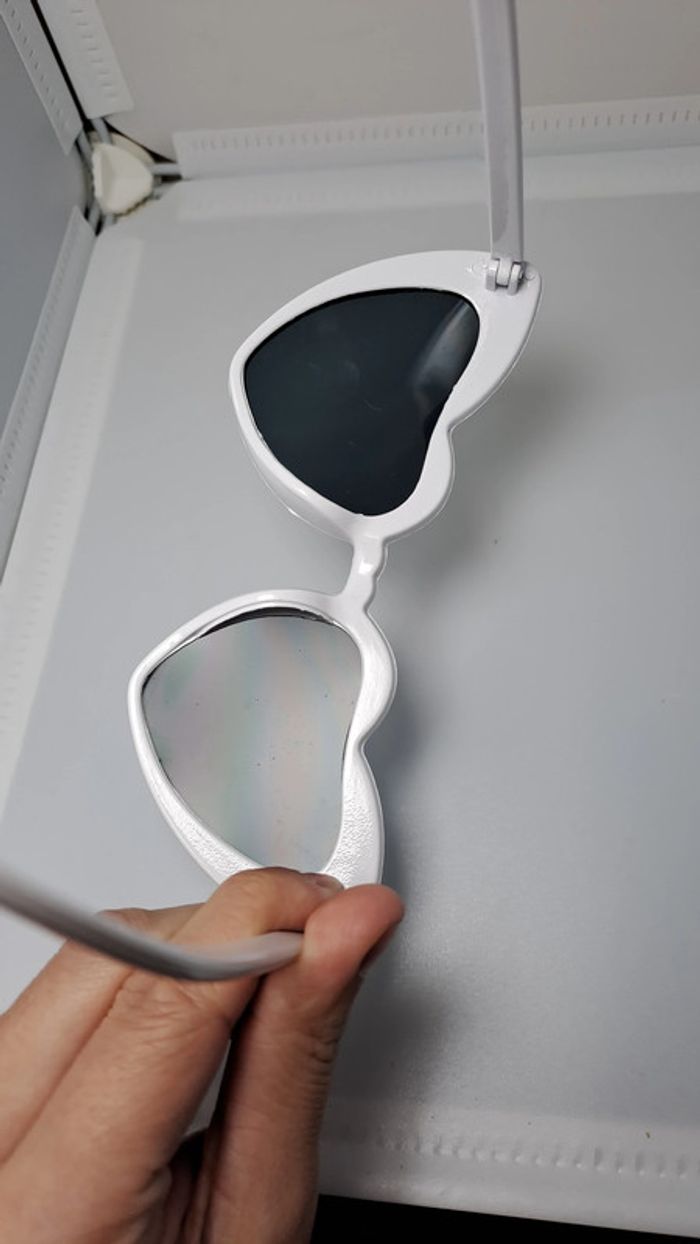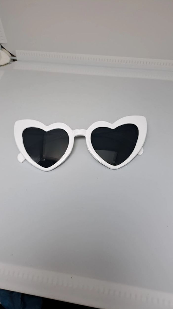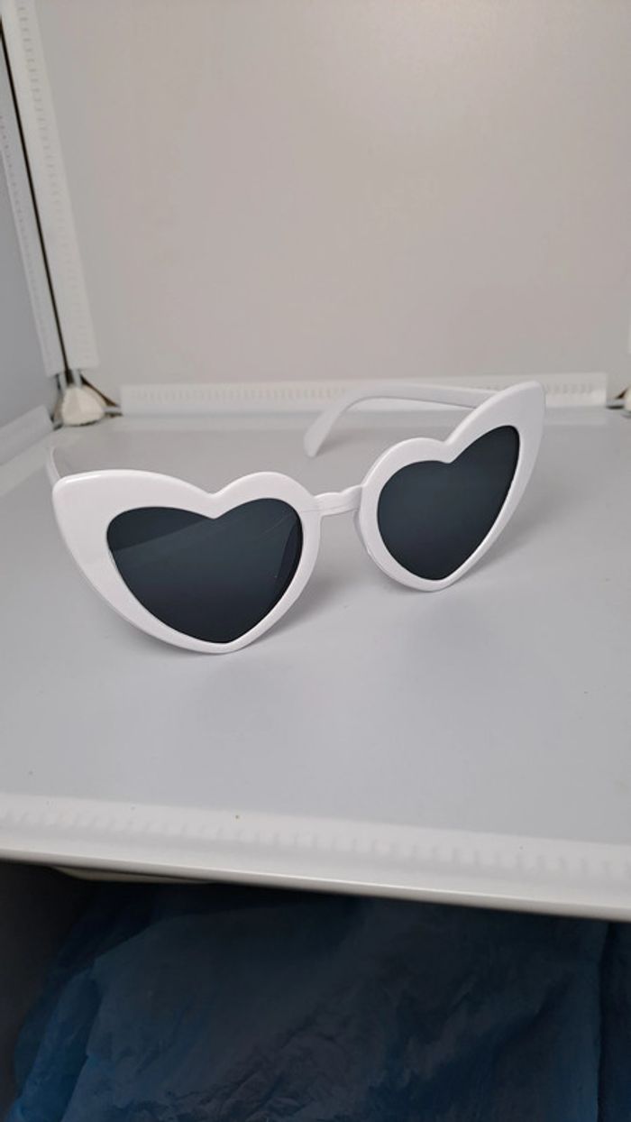 🦚Lunette de soleil femme en forme de cœur type vintage de couleur blanc. En parfait état jamais portée. 🦚Dressing trier par # dans mon " à propos ".